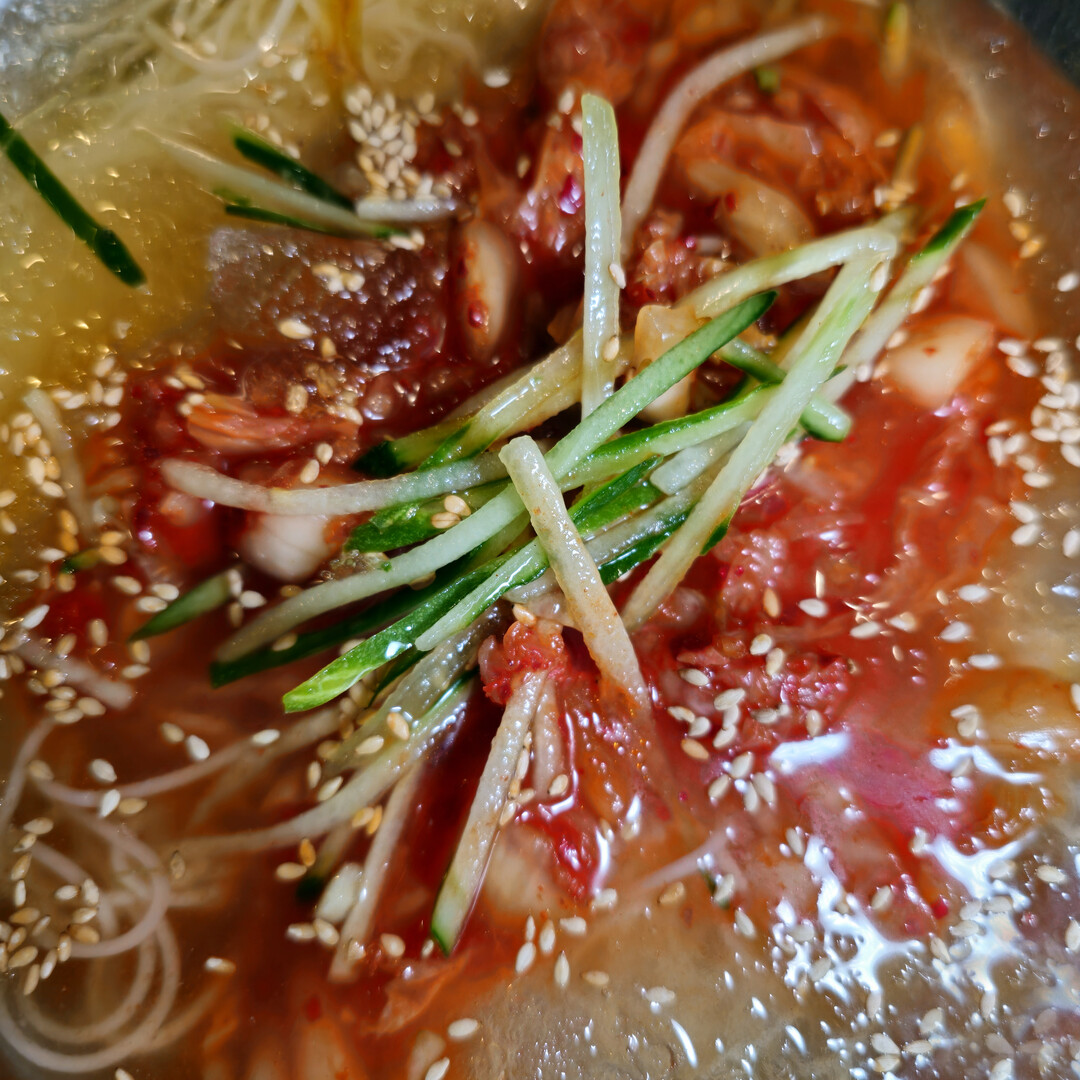 다만 나트륨 함량이 다소 높을 수 있다. 김치국물과 냉면 육수 모두 염분이 있기 때문이다. 고혈압이나 신장 질환이 있다면 국물을 적게 마시는 것이 좋다.