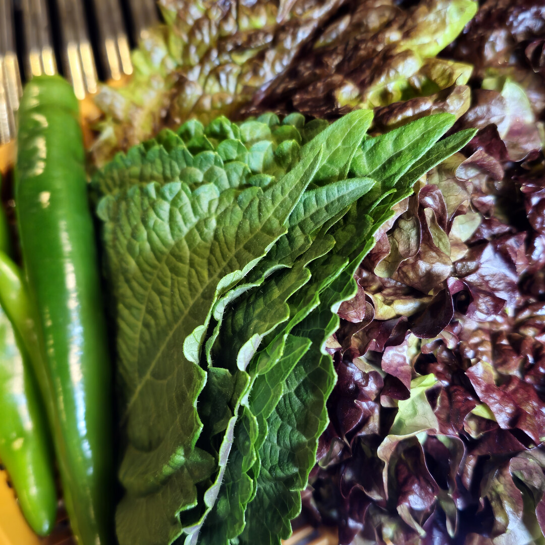 [K라이프저니 | 이주상 기자] 삼겹살이나 목살을 구울 때 빠지지 않는 것이 있다. 바로 깻잎, 상추, 고추다. 사진 속 싱싱한 초록빛 깻잎과 청·적치마 상추, 그리고 매콤한 청양고추는 단순한 곁들임이 아니다. 수백 년간 이어져 온 한국의 쌈 문화에는 영양학적 과학이 숨어 있다.