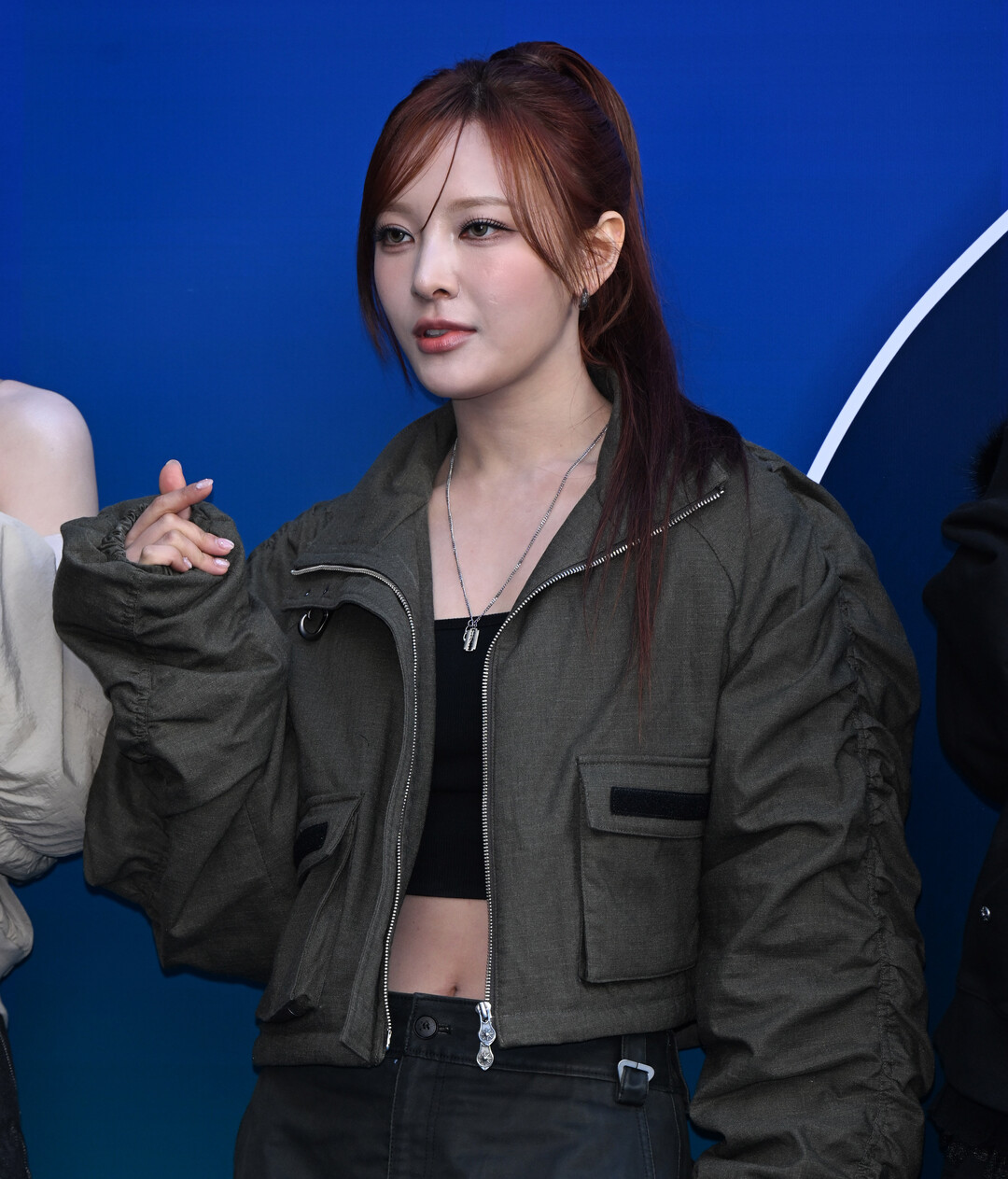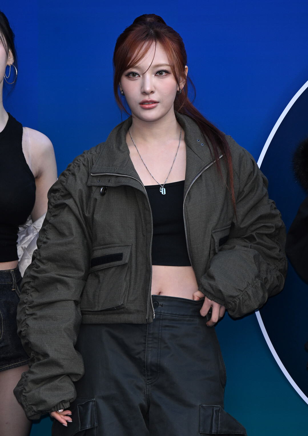 7일 서울 중구 동대문디자인플라자에서 열린 디자이너 강대헌의 에드리엘로스 컬렉션 쇼에 참석한 문수아는 카키 크롭 블루종과 블랙 카고 팬츠를 매치해 기능성과 스타일을 동시에 구현한 룩을 완성했다.