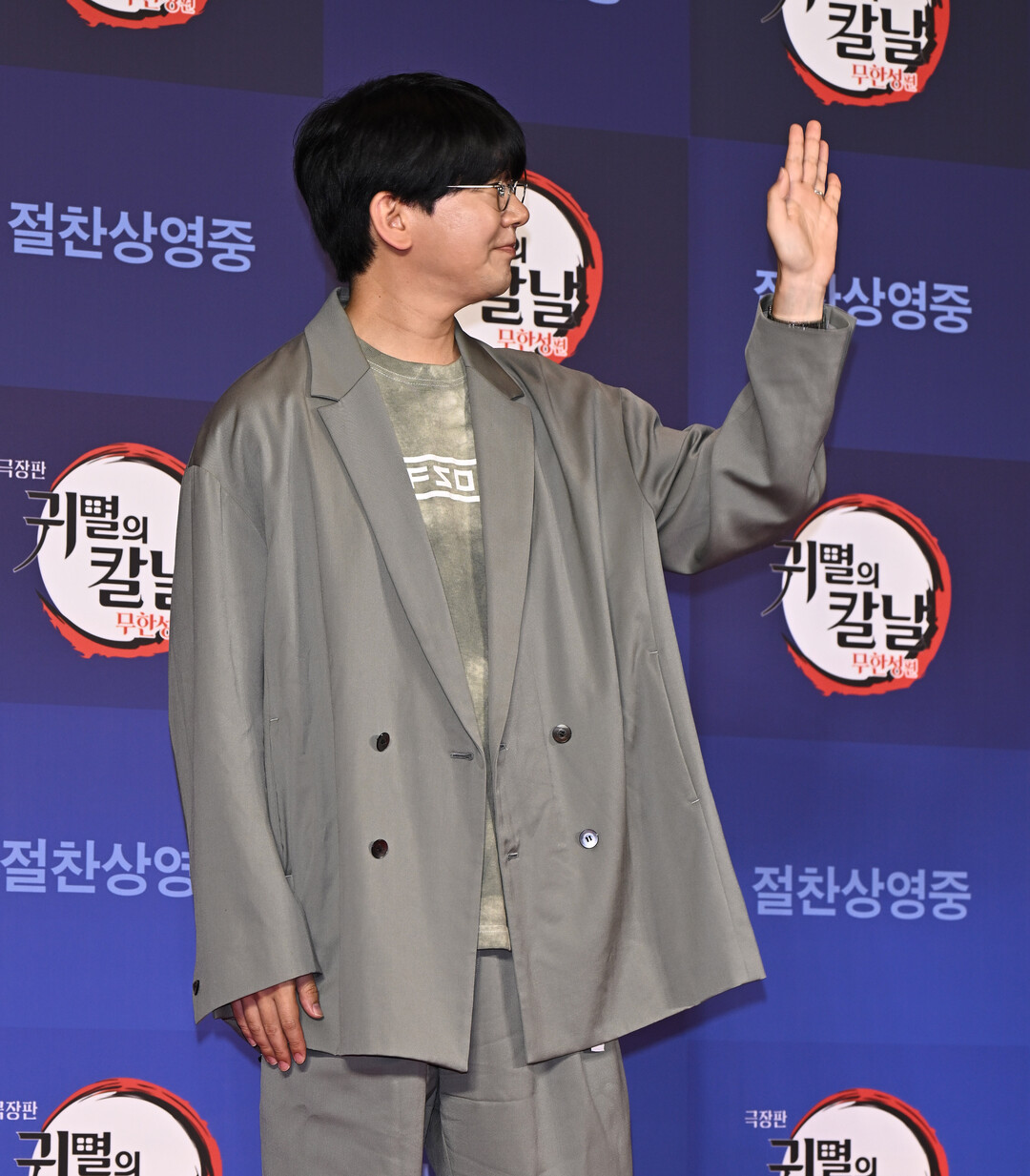 하나에 나츠키는 지난달 30일 오후 서울 용산 CGV에서 열린 극장판 애니메이션 '귀멸의 칼날: 무한성편' VIP 시사회 레드카펫에 참석, 그레이 컬러의 오버사이즈 더블 브레스티드 재킷에 동일 톤의 와이드 팬츠를 매치한 수트 룩을 선보였다.