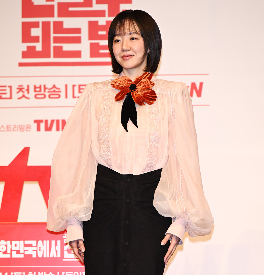 헤어스타일은 귀 아래로 자연스럽게 떨어지는 단발 커트로, 앞머리를 가지런히 내린 스타일이 이목구비를 또렷하게 부각시켰다. 군더더기 없이 매끈하게 정돈된 블랙 단발은 빈티지풍 블라우스 룩과 어우러져 레트로 감성을 배가했다.