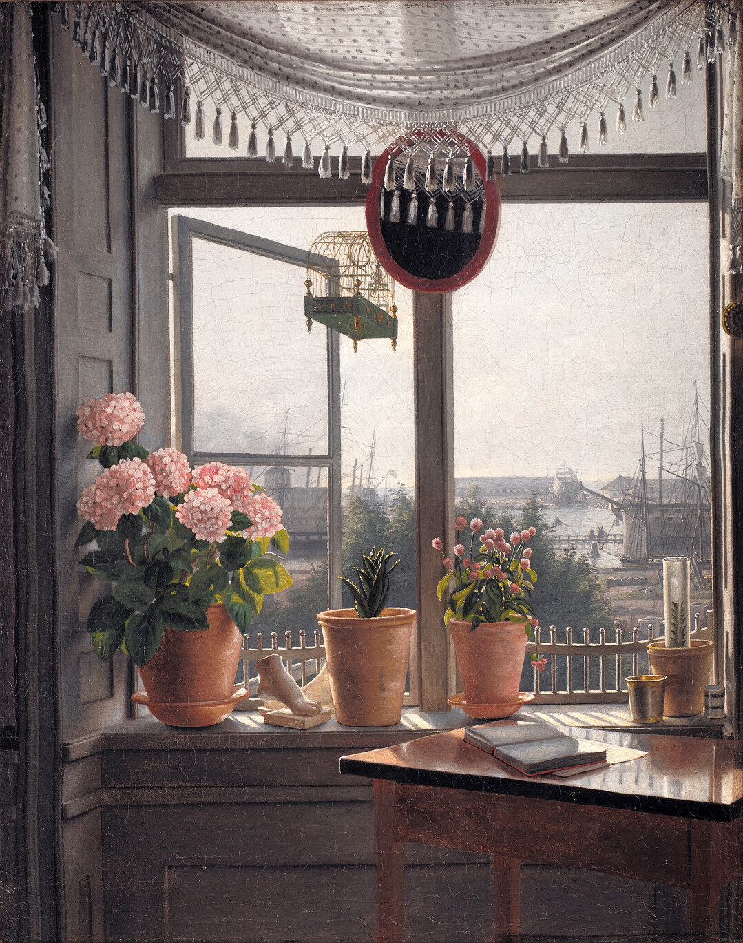 가로 29.8cm, 세로 38cm의 소형 유화인 이 작품은 1823년에서 1827년 사이에 제작된 것으로 추정되며, 코펜하겐 자신의 작업실 창문을 통해 바라본 항구 풍경을 담고 있다. 화면은 크게 '실내'와 '실외'라는 두 개의 공간으로 나뉜다.