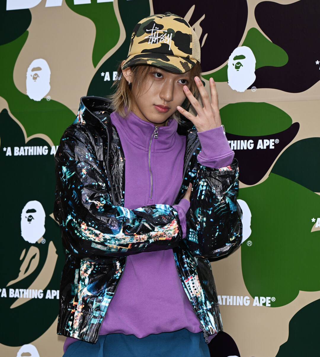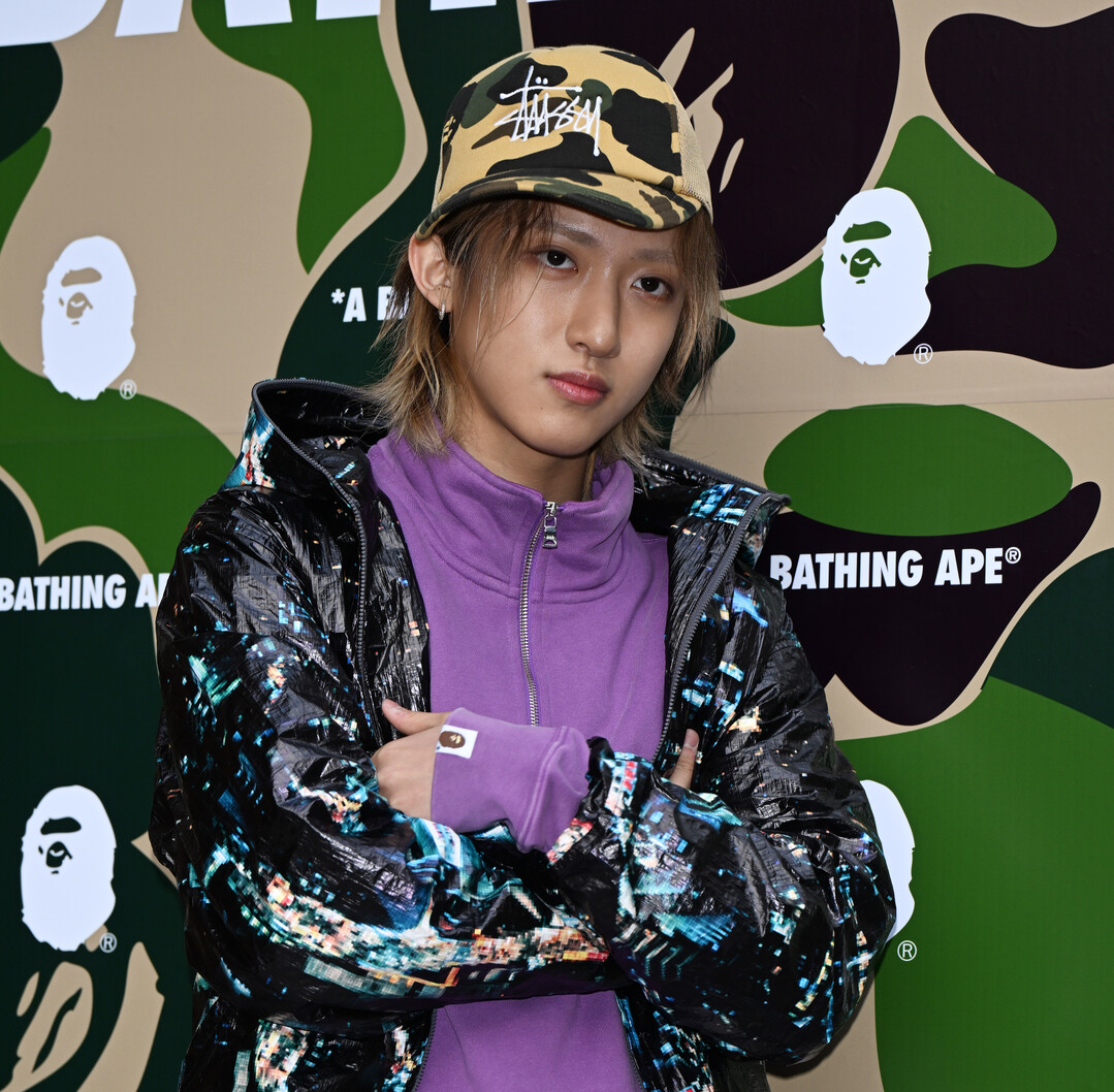 패션의 완성도를 한층 높인 것은 헤드 피스 선택이었다. 카모플라주 패턴의 STÜSSY(스투시) 트러커캡을 매치해 BAPE 룩과 다른 스트리트 브랜드를 자연스럽게 조화시키는 믹스앤매치 감각을 발휘했다. 캡 아래로 내추럴 브라운 톤의 웨이비한 중단발 머리카락이 자연스럽게 흘러내려 전체 룩에 여유롭고 자유분방한 무드를 더했다.