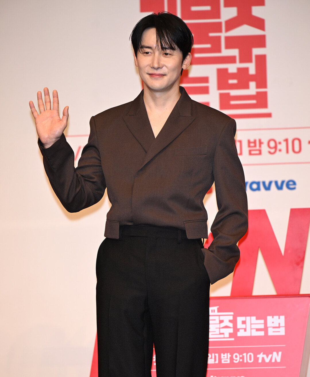 [K라이프저니|글·사진 이주상 기자] 배우 김준한이 9일 서울 구로구 신도림 더링크 호텔에서 열린 tvN 12부작 드라마 '대한민국에서 건물주 되는 법' 제작발표회에 참석해 탄탄한 체격과 훤칠한 외모를 앞세운 스타일리시한 룩으로 포토월을 장식했다.