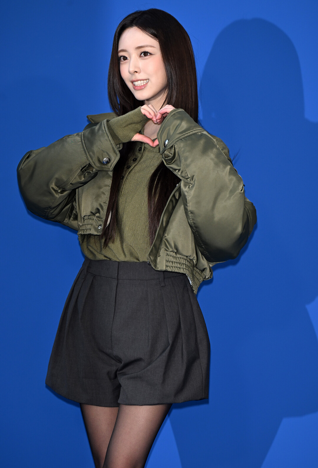 긴 생머리 헤어스타일과 깔끔한 메이크업은 청순한 이미지를 살리면서도, 항공점퍼가 주는 걸크러시한 매력과 절묘한 조화를 이뤘다.