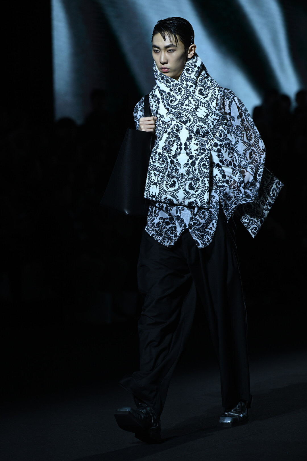 특히 블랙과 화이트를 기조로 한 컬러 팔레트 속에서 골드, 올리브 그린, 핑크 페이즐리 패턴이 포인트로 등장하며 절제된 화려함을 연출했다. 디자이너는 "미니멀한 라인 속에서도 질감과 레이어의 변주를 통해 풍성한 서사를 담고자 했다"는 의도를 밝혔다.