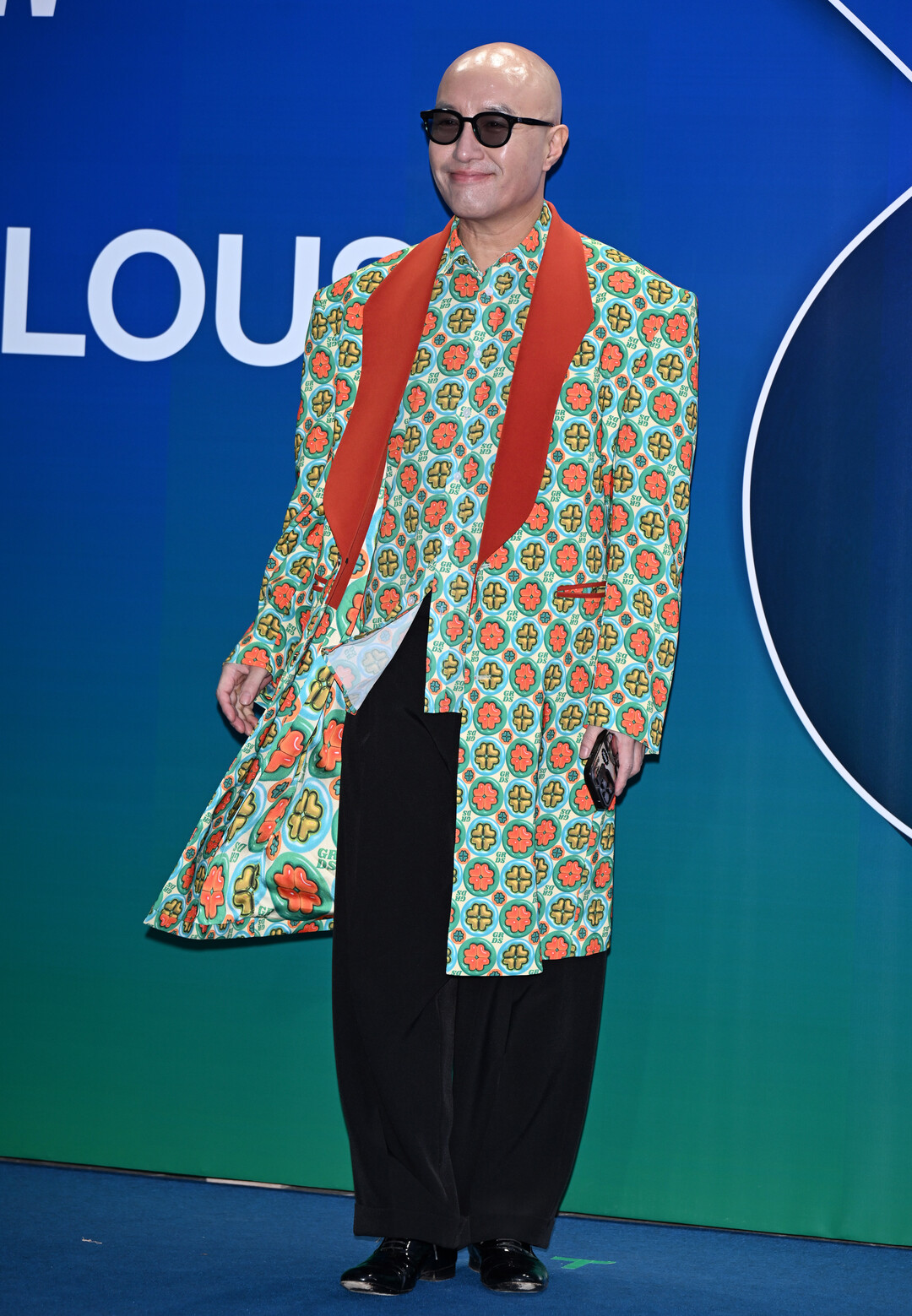 홍석천의 시그니처 스킨헤드 스타일은 화려한 코트를 더욱 돋보이게 하는 요소다. 깔끔한 스킨헤드는 터키시 패턴의 복잡함과 대비를 이루며 전체적인 룩에 모던하고 세련된 균형감을 부여했다.