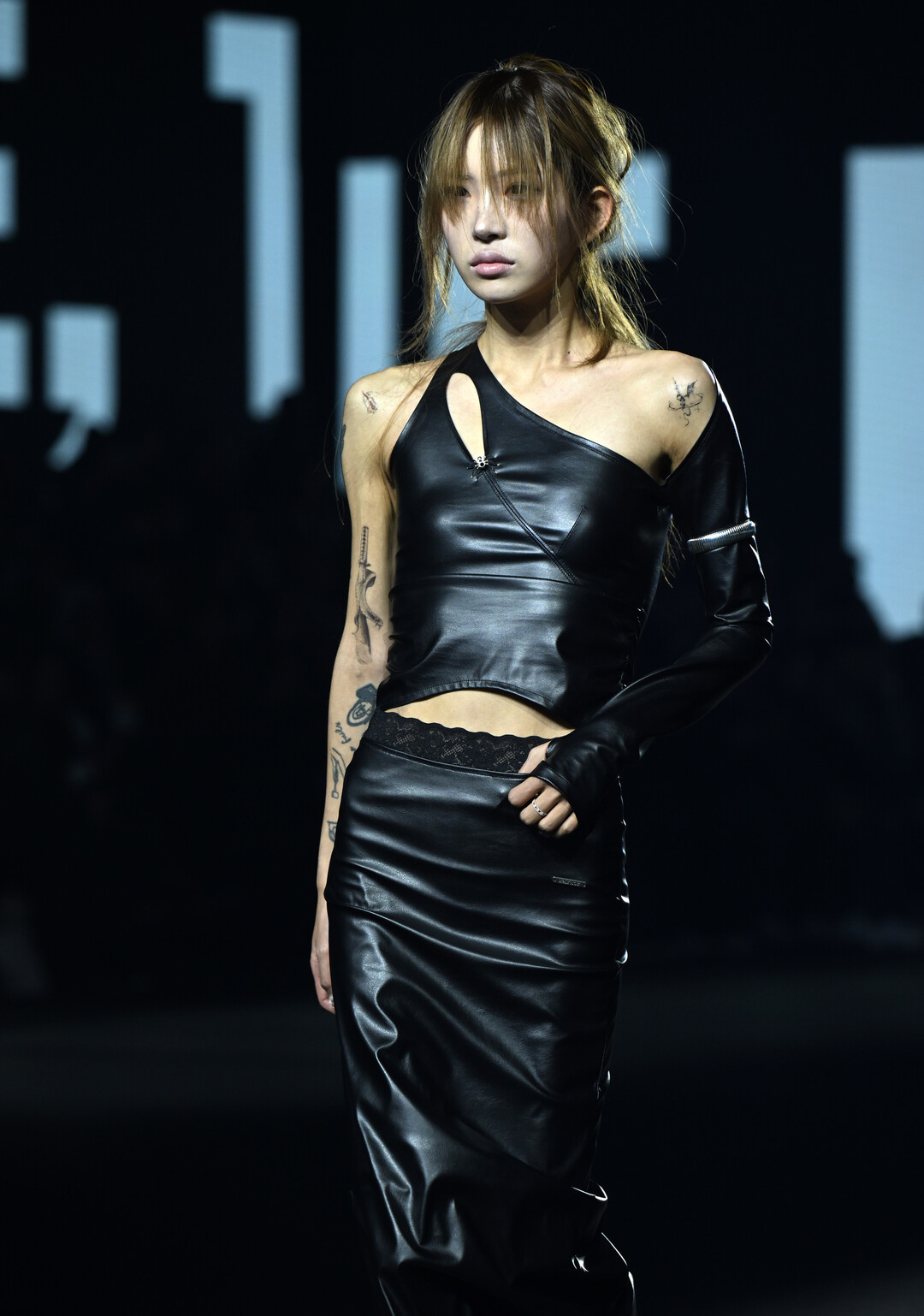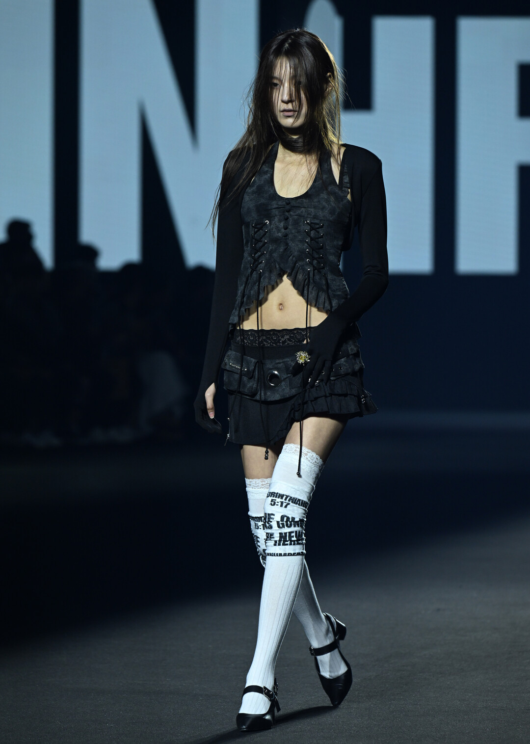 반면 블랙 컬렉션은 해체와 저항의 미학을 구현했다. 레이스업 디테일의 코르셋 톱과 멀티 포켓 카고 미니스커트, 화이트 니하이 삭스와 메리제인 슈즈의 조합은 펑크와 고딕, 스트릿 패션의 요소를 재해석하며 반항적이면서도 세련된 감성을 완성했다.