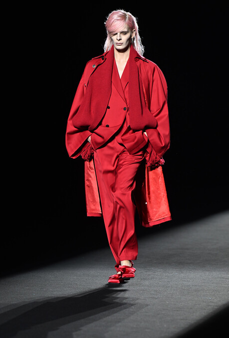 오버사이즈 블랙 레더 봄버 재킷과 시어 레깅스의 조합, 비대칭 레더 톱과 하이웨이스트 레더 스커트의 세트는 하드웨어와 소프트웨어, 강함과 연약함의 공존을 보여줬다. 특히 레더 재킷 아래로 비치는 레이스 디테일은 펑크의 반항성과 로맨틱한 취약성을 동시에 담아냈다.