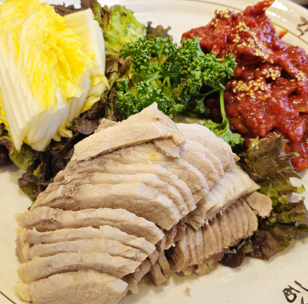 항정살은 한 마리당 약 400~600g만 얻을 수 있는 귀한 부위로, 마블링이 풍부하면서도 육질이 부드러워 '돼지고기의 등심'으로 불린다. 각시보쌈의 항정살 보쌈은 입에 넣는 순간 고소한 지방이 혀 위에서 녹아내리며, 쫄깃하면서도 부드러운 식감이 일품이다.