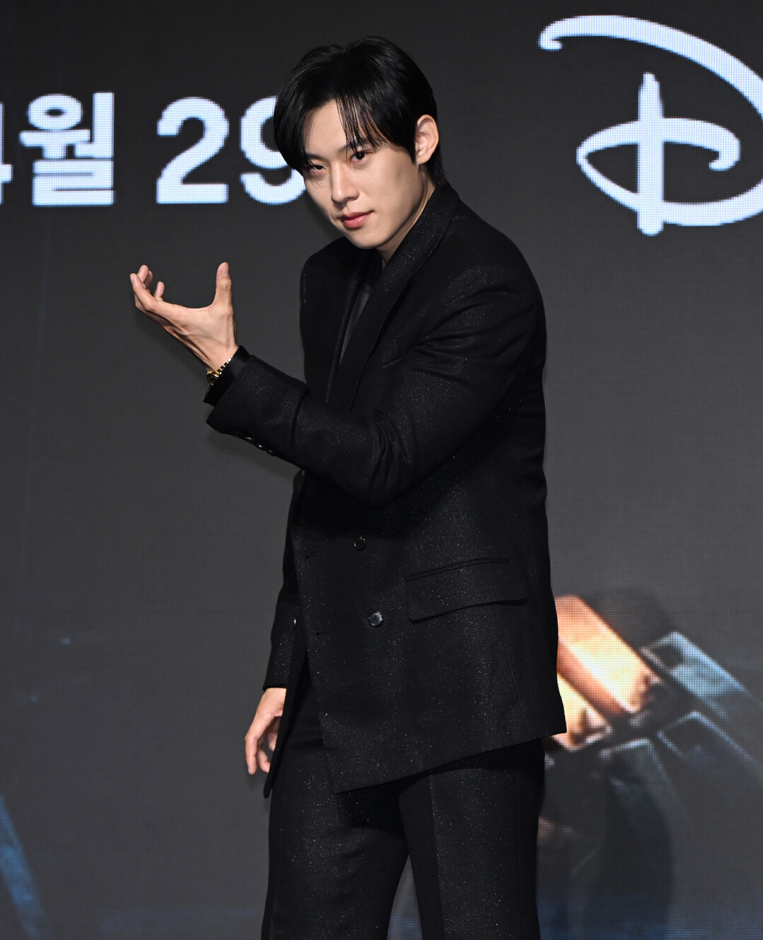 [K라이프저니|글·사진 이주상 기자] 배우 김성철이 27일 오전 서울 영등포구 콘래드 서울 호텔에서 열린 디즈니+ 오리지널 시리즈 '골드랜드' 제작발표회에 참석해 세련된 블랙 수트 차림으로 눈부신 존재감을 뽐냈다.