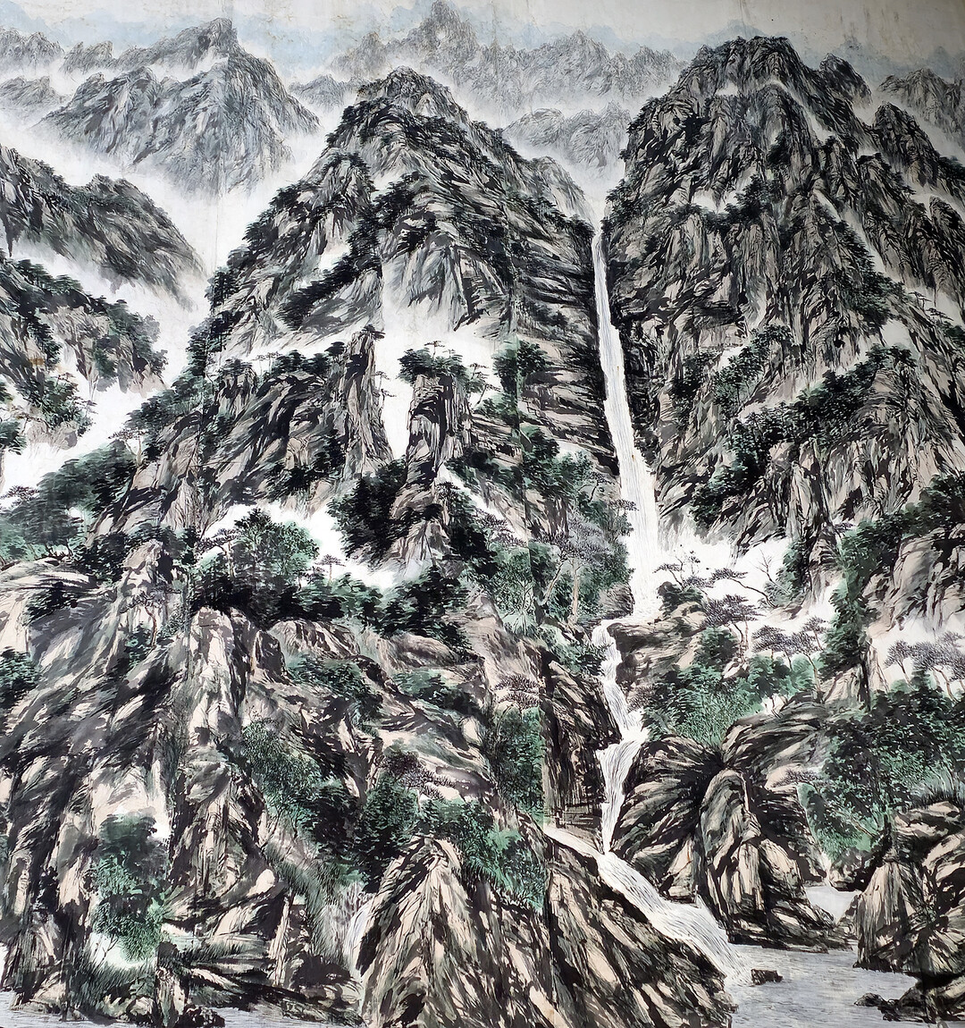 [K라이프저니 | 이여름 기자] 서울 여의도 KBS 신관 로비에는 관람객의 시선을 압도하는 대형 한국화 작품이 걸려 있다. 단정(旦丁) 김경식(金敬植) 화백의 '금강산 비봉폭포 소견(金剛山 飛鳳瀑布 所見)'이다. 2001년 광목천에 수묵담채 기법으로 완성된 이 작품은 가로 6,250mm, 세로 7,960mm에 달하는 초대형 규모로, 금강산 4대 폭포 중 하나인 비봉폭포의 웅장한 장관을 화폭에 담아냈다.
