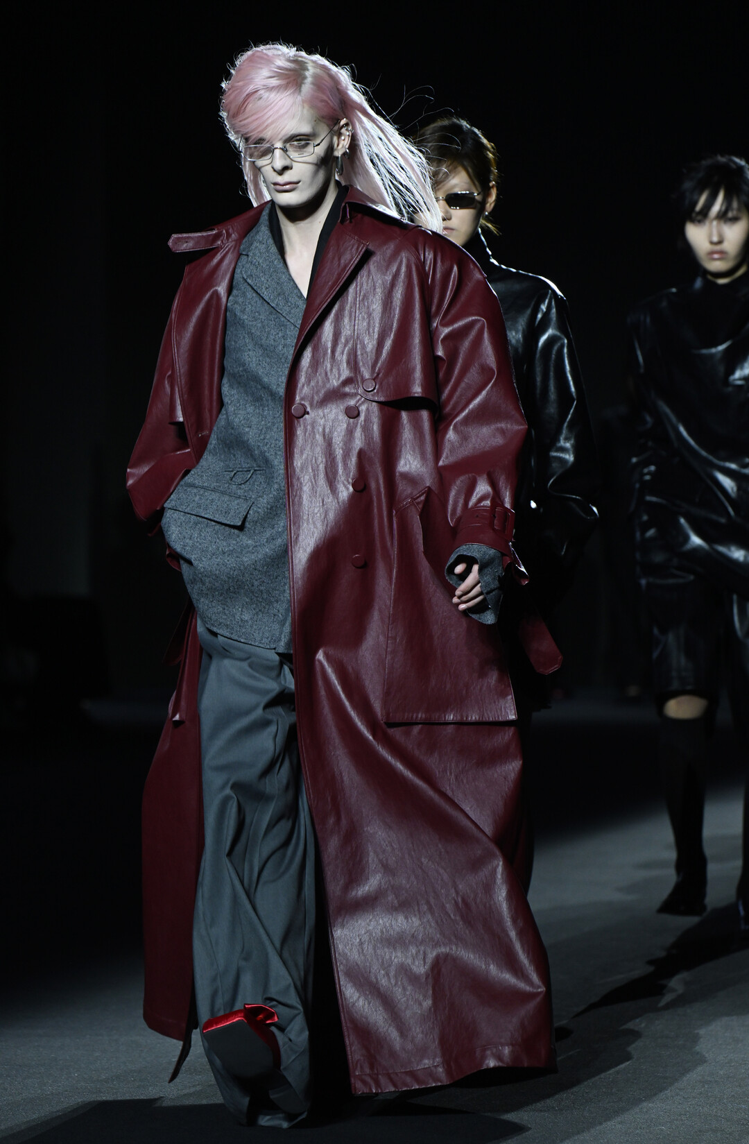 컬렉션의 오프닝을 장식한 토탈 레드 룩은 데일리미러의 디자인 철학을 압축적으로 보여줬다. 오버사이즈 레드 트렌치 코트와 레드 더블 브레스티드 재킷, 와이드 레그 팬츠, 그리고 레드 슬리퍼까지 완벽한 단색 조화를 이룬 이 룩은 열정, 도전, 상승이라는 키워드를 시각적으로 구현했다. 핑크 헤어와 매치된 레드 앙상블은 젠더리스하면서도 강렬한 존재감을 발산했다.