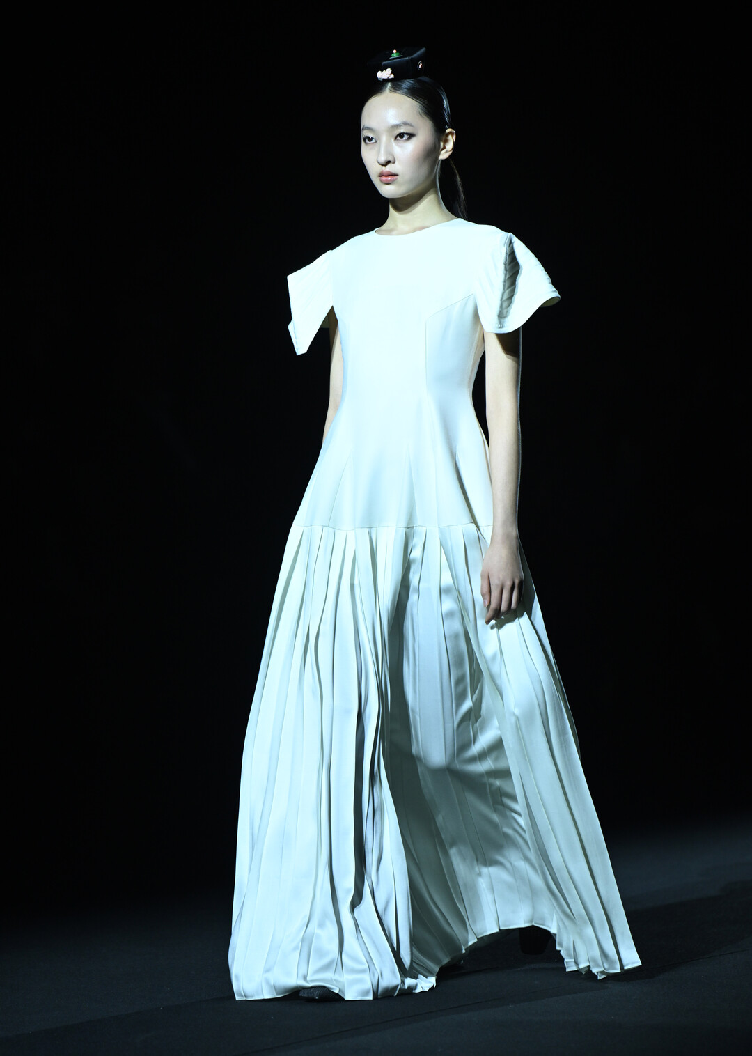 화이트 원피스의 광택 있는 표면은 한지에 빛이 반사되는 효과를 재현했으며, 비딩 장식이 화려한 미니 드레스는 전통 자수와 보석 장식을 현대적으로 재해석했다. 골드와 블루 컬러의 비즈 워크는 조선시대 왕실 복식의 화려함을 오마주하면서도 현대적 감각으로 세련되게 표현했다.