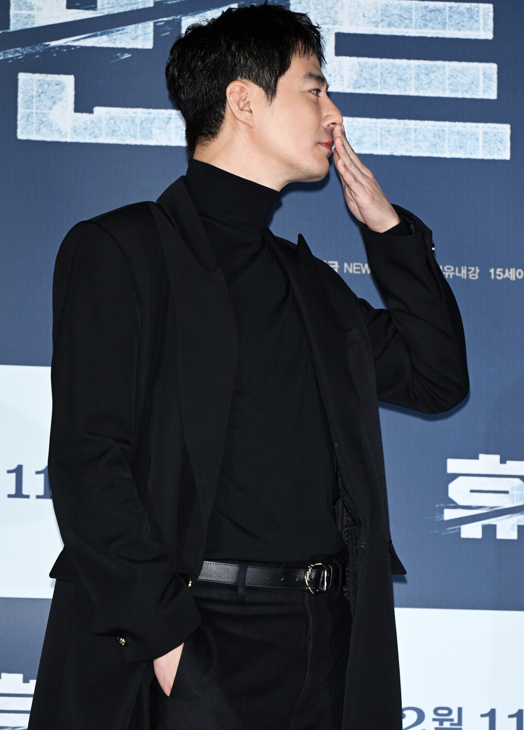 [K라이프저니 | 이여름 기자] 배우 조인성이 신작 영화 '휴민트' 제작보고회에서 올블랙 롱 코트 룩으로 성숙한 남성미와 우아한 카리스마를 동시에 발산했다.