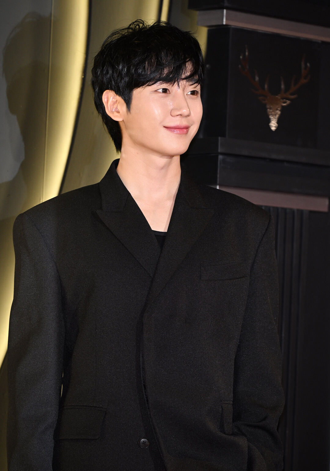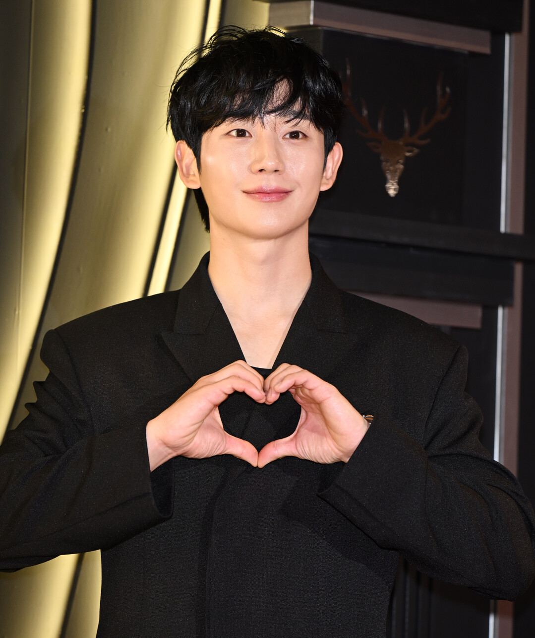 헤어스타일 역시 자연스럽게 내려온 블랙 헤어를 연출해 전체적인 다크 무드와 조화를 이뤘다. 과도한 액세서리 없이 절제된 스타일링만으로도 완성도 높은 룩을 선보인 그는, 포토콜에서 특유의 여유로운 미소와 함께 하트 포즈를 취하며 카메라를 향해 따뜻한 매력을 발산했다.