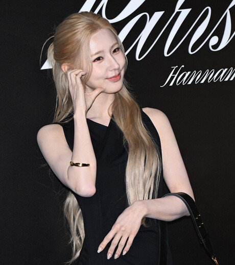 귀걸이는 골드 리본 모티프 상단에 티어드롭형 크리스털이 달린 드롭 이어링으로, 리본이라는 페미닌한 요소에 크리스털의 빛 굴절 효과를 더해 근접 촬영 시 더욱 존재감 있게 빛났다. 손톱은 밀키 화이트 베이스에 골드 팁을 포인트로 더한 프렌치 네일로 마무리해 주얼리와의 일관된 골드 톤을 유지하면서도 절제된 세련미를 완성했다.