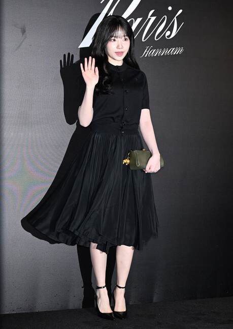 이날 장원영은 올블랙으로 장착해 우아한 다크 페미니티를 구현했다. 겹겹이 쌓인 러플 레이어는 강렬하면서도 섬세한 인상을 동시에 만들어냈으며, 블랙이라는 무채색 베이스 위에 골드 주얼리를 적극 활용한 스타일링은 클래식 로코코 감성을 현대적으로 재해석한 것으로 평가받는다.