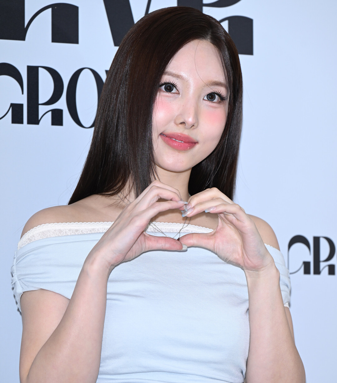 헤어는 다크 브라운 컬러의 긴 생머리를 자연스럽게 내려 볼드하고 윤기 있는 스트레이트 스타일로 연출했다. 별도의 액세서리 없이 생머리의 결 자체로 깔끔하게 정돈된 구성이 오프숄더 탑이 드러내는 어깨선과 조화를 이뤘다.