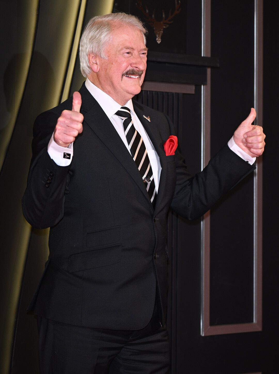블랙 수트에 레드 포켓 치프…세월이 만든 품격 있는 신사
