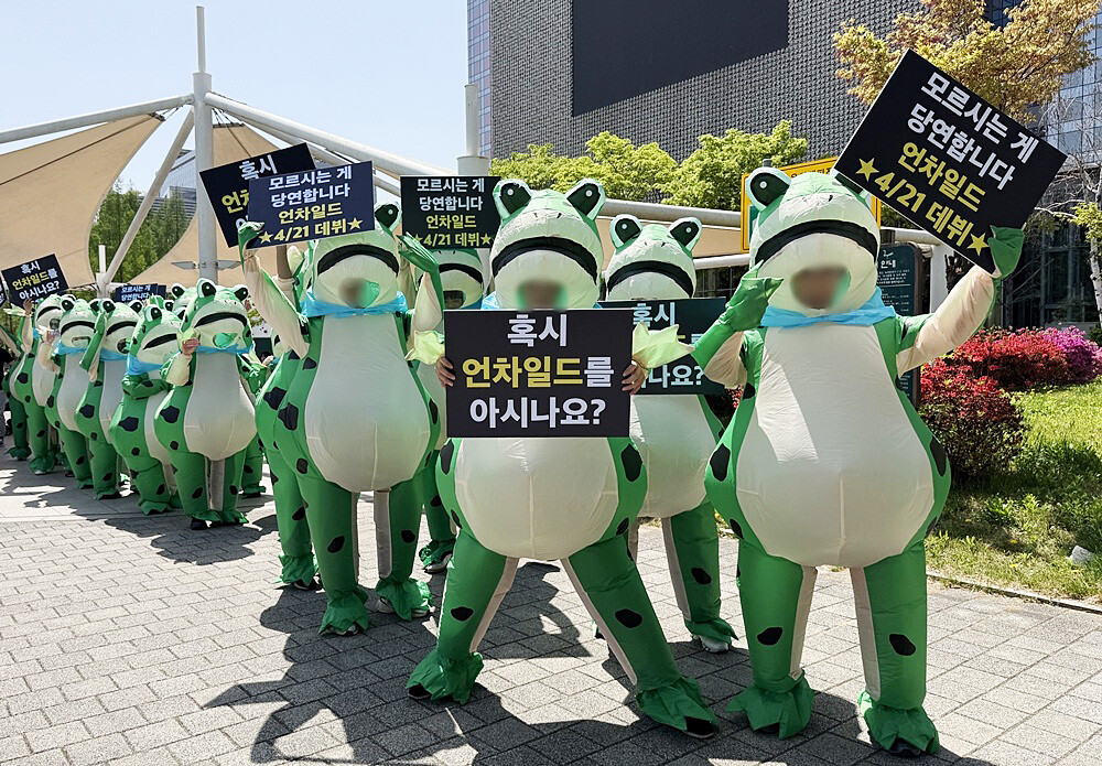 현장에는 데뷔 타이틀곡을 미리 감상할 수 있는 '청음 존'도 마련돼 많은 이들의 관심을 모았다. 같은 날 언차일드의 심볼인 청개구리를 활용한 길거리 프로모션도 동시에 전개됐다. '혹시 언차일드를 아시나요?'라는 피켓을 든 청개구리들이 상암을 시작으로 홍대, 여의도, 성수 일대까지 군중 사이를 누비며 메시지를 전달했다.