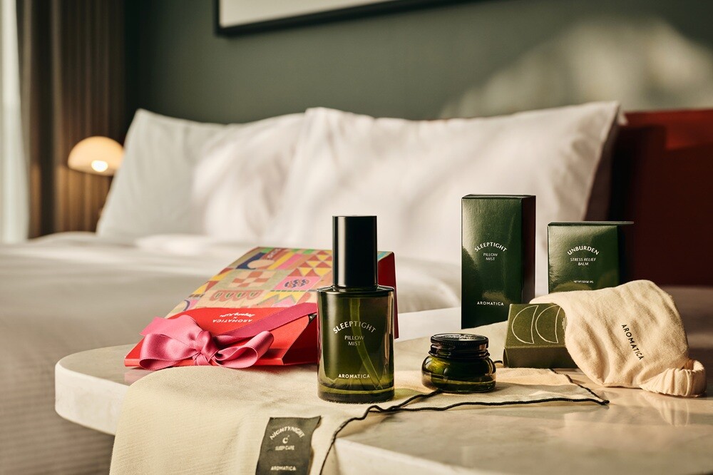 이번에 선보이는 첫 번째 패키지 '레스트 포 유(Rest For You)'는 비건 뷰티 브랜드 '아로마티카'와 협업해 2026년 1월 31일까지 운영된다. 판교 도심 시티뷰를 조망할 수 있는 비즈니스 디럭스 객실 1박과 아로마티카의 홀리데이 에디션 기프트 세트가 제공된다.