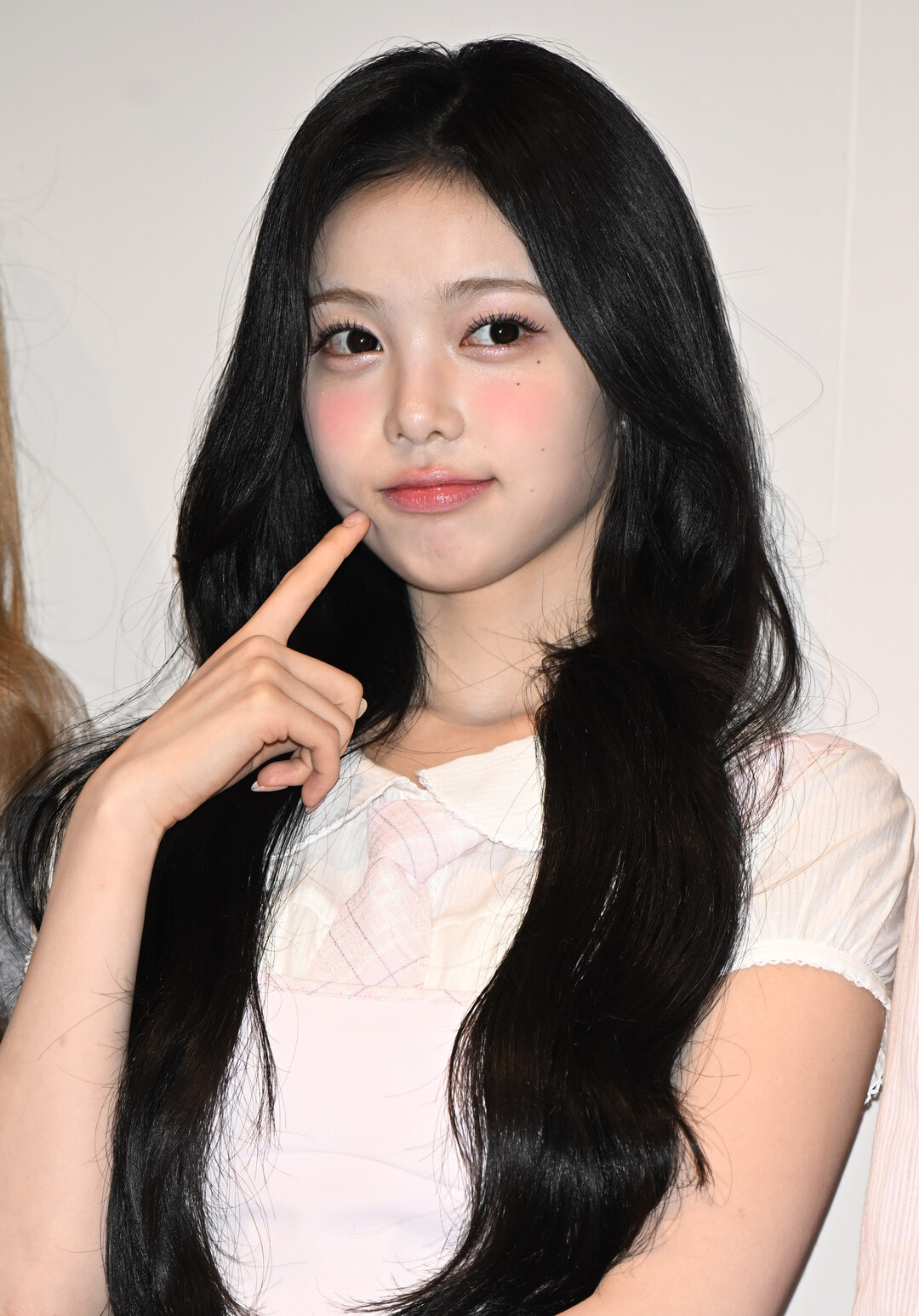 헤어와 메이크업 역시 룩의 완성도를 높이는 데 일조했다. 다크브라운의 긴 웨이브 헤어는 자연스럽게 흘러내리며 부드럽고 청순한 분위기를 연출했다. 메이크업은 깨끗하게 정돈된 피부 표현 위에 양 볼 가득 퍼진 핑크빛 블러셔로 사랑스러운 홍조를 강조하고, 촉촉한 핑크 뉘앙스의 립으로 마무리해 인형처럼 사랑스러운 인상을 완성했다. 귀에는 작고 정제된 스터드 이어링으로 포인트를 더해 전체 스타일링과의 조화를 꾀했다.