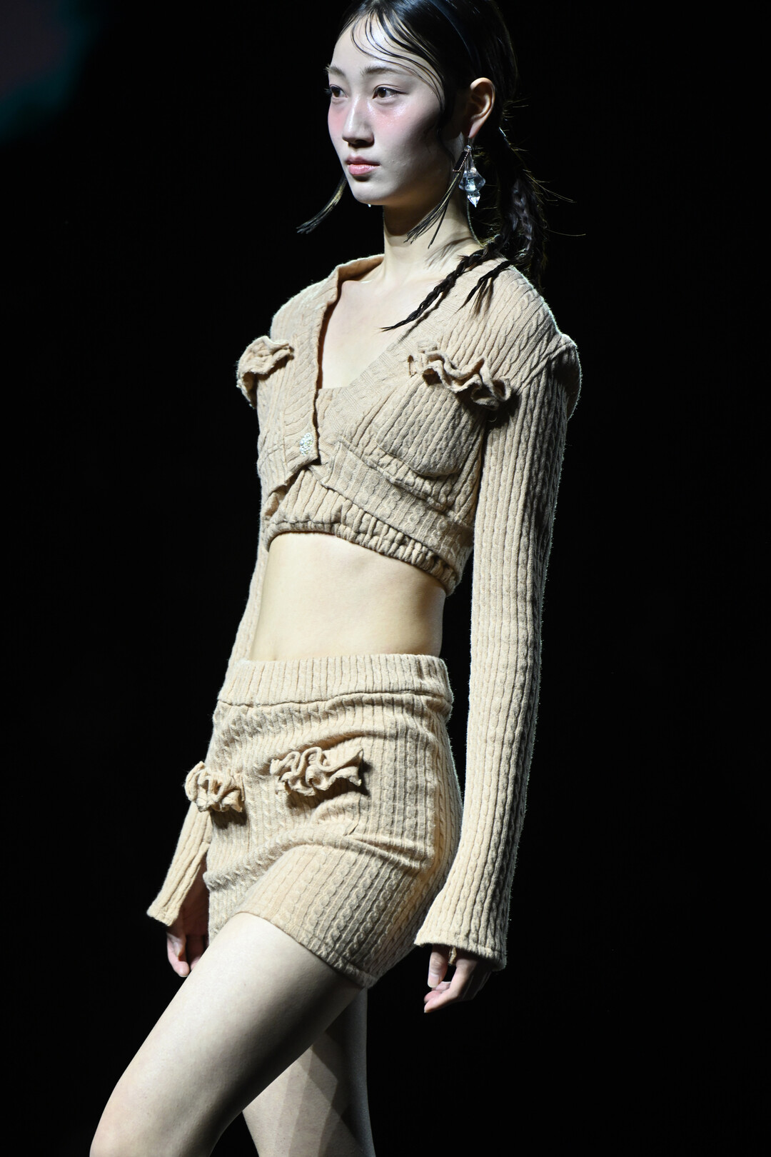 F/W 시즌답게 퍼 소재를 적극 활용했다. 화이트 퍼 부츠는 컬렉션의 시그니처 아이템으로 반복 등장하며, 블랙 퍼를 배치한 민트 코트와 그레이 퍼 코트는 보온을 넘어 조형적 요소로 기능했다.