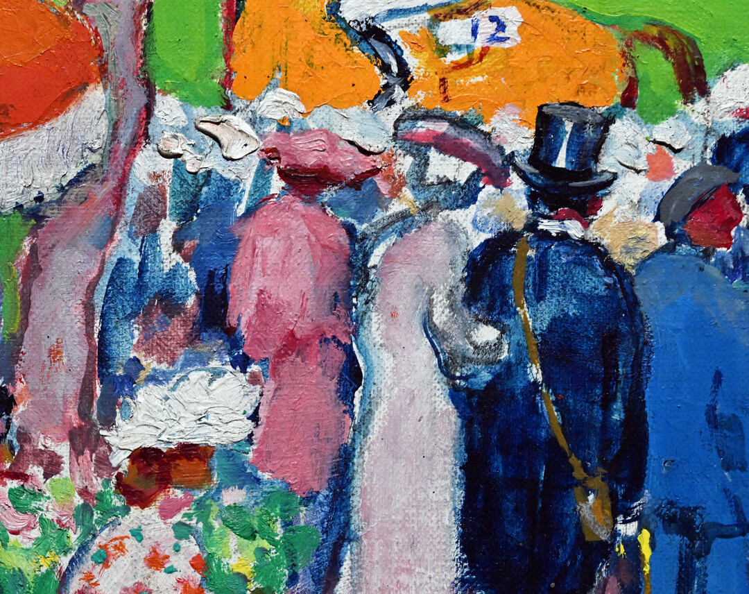 경마는 19세기 이후 프랑스의 국민적 여가 활동으로 자리 잡았으며, 이후 수십 년 동안 여러 화가의 주요 작품 소재로 등장했다. 반 동겐은 1950년대에도 여전히 파리 사교계의 주요 행사였던 경마를 야수파 특유의 강렬한 색채로 재해석했다.