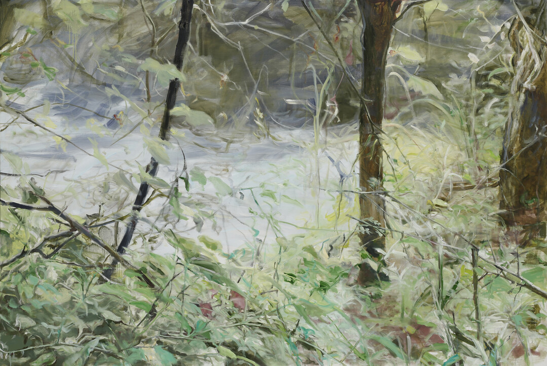 작가는 작업실 인근 대지산을 산책하며 접한 풍경을 화폭에 담아왔다. 그의 시선은 산의 내부로 직진하며, 나무와 덤불 숲이 바닥과 함께 밀려온다. 특정 장소가 뿜어내는 현장감을 그림의 즉흥성으로 풀어내며, 언어나 개념으로 환원될 수 없는 순간들을 포착한다.