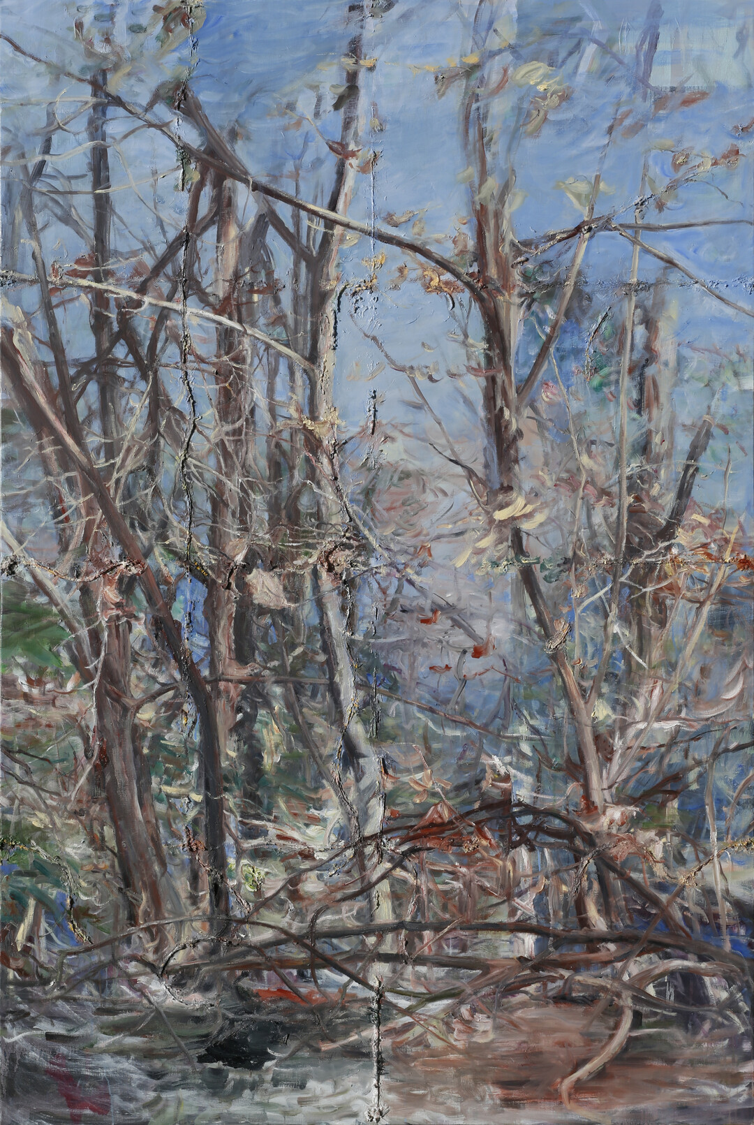세상은 고정시킬 수 없고 생성 중이며 운동 중이다. 작가는 나무의 살아있는 상태와 힘의 동세, 생성 중인 시간을 그리고자 한다. 수시로 떨어대는 세계를 고정된 화면 안에 온전히 응고시킬 수 없기에, 그는 그 흐름과 운동, 기운을 더듬어 다시 보여준다.