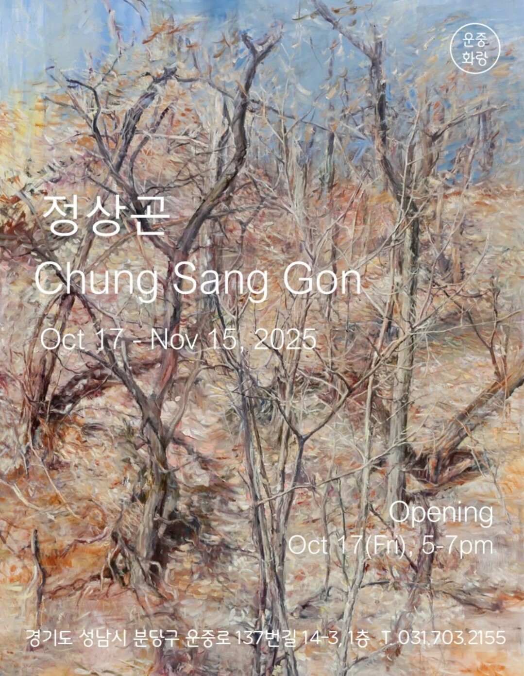 경기도 성남시 분당구 운중화랑은 10월 17일부터 11월 15일까지 정상곤 개인전 '찬란한 그러면서 허망한(Radiant Yet Ephemeral)'을 개최한다. 이번 전시는 작가가 최근 2년간 준비한 회화 작품 20여 점으로 구성된다.