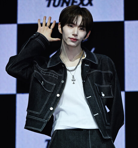 [K라이프저니|글·사진 이주상 기자] 신인 그룹 튜넥스(TUNEXX)의 멤버 시환이 3일 서울 광진구 예스24 라이브홀에서 열린 데뷔 쇼케이스 포토타임에 등장해 스포티 스트리트 스타일링과 밝고 사랑스러운 비주얼의 완벽한 조화로 현장을 사로잡았다. 골드 블론드 헤어와 선명한 이목구비를 바탕으로 강렬하면서도 친근한 존재감을 발산한 시환은 데뷔 첫날부터 독보적인 매력으로 주목받았다.
