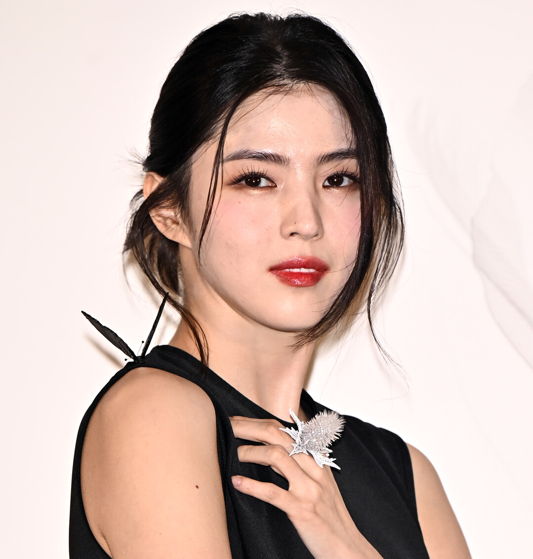 한소희는 슬릿 디테일의 블랙 실크 슬리브리스 드레스로 시크하고 우아한 분위기를 연출했다. 어깨에 장식한 부쉐론 시그니처 나비 브로치가 입체감 있게 빛을 발했으며, 플로럴 모티브 링이 섬세한 여성미를 더했다.