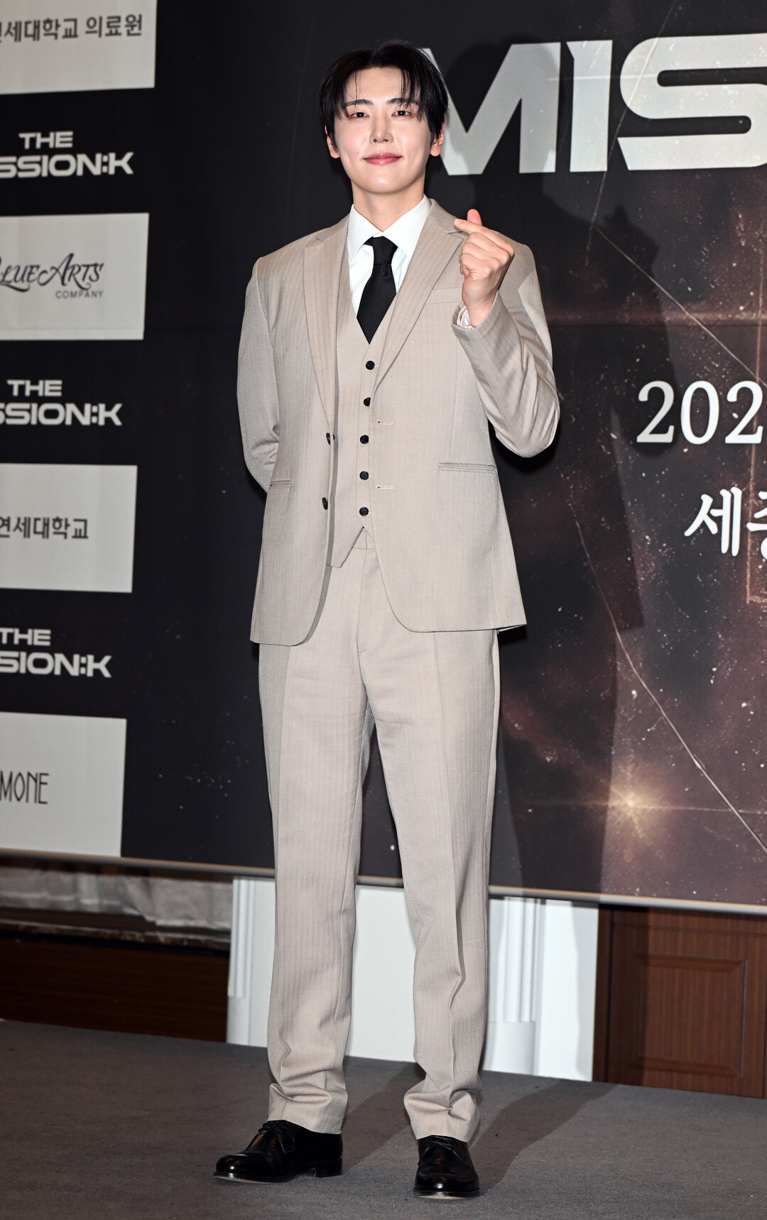 5일 서울 프레스센터에서 열린 뮤지컬 콘서트 '더 미션:K(The Mission:K)' 제작발표회에 참석한 재윤은 베이지 컬러의 3피스 슈트로 차분하면서도 품격 있는 스타일링을 완성했다. 재킷과 조끼, 팬츠로 구성된 클래식한 정장 세트는 재윤의 184cm 장신과 탄탄한 피지컬을 한층 돋보이게 했다.