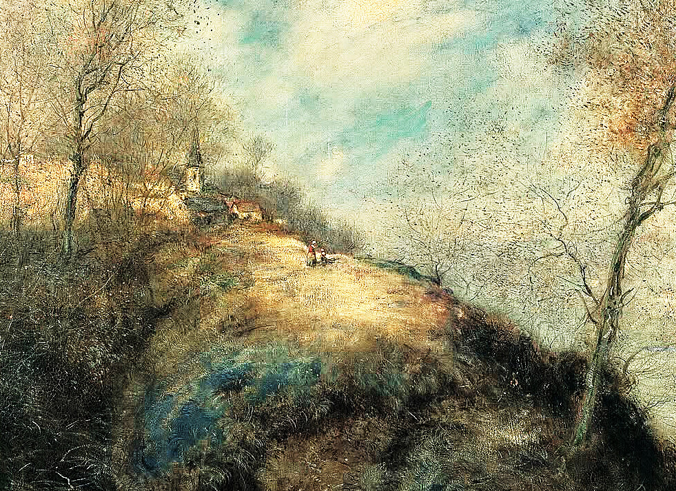 1904년 작 ‘버려진 길(The Abandoned Road)’은 현재 아르헨티나 부에노스아이레스 국립미술관(Museo Nacional de Bellas Artes)이 소장하고 있다. 화면은 늦가을 혹은 초겨울의 언덕길을 담고 있다. 잎을 모두 떨군 앙상한 나목(裸木)들이 캔버스 양쪽에서 화면을 감싸듯 서 있고, 그 사이로 완만한 능선이 원경의 작은 마을 교회 첨탑을 향해 뻗어 있다. 언덕 중턱에는 두 인물이 희미하게 자리하고 있어, 광활한 자연 앞에서 인간의 존재가 얼마나 작고 미미한지를 시각적으로 웅변한다.
