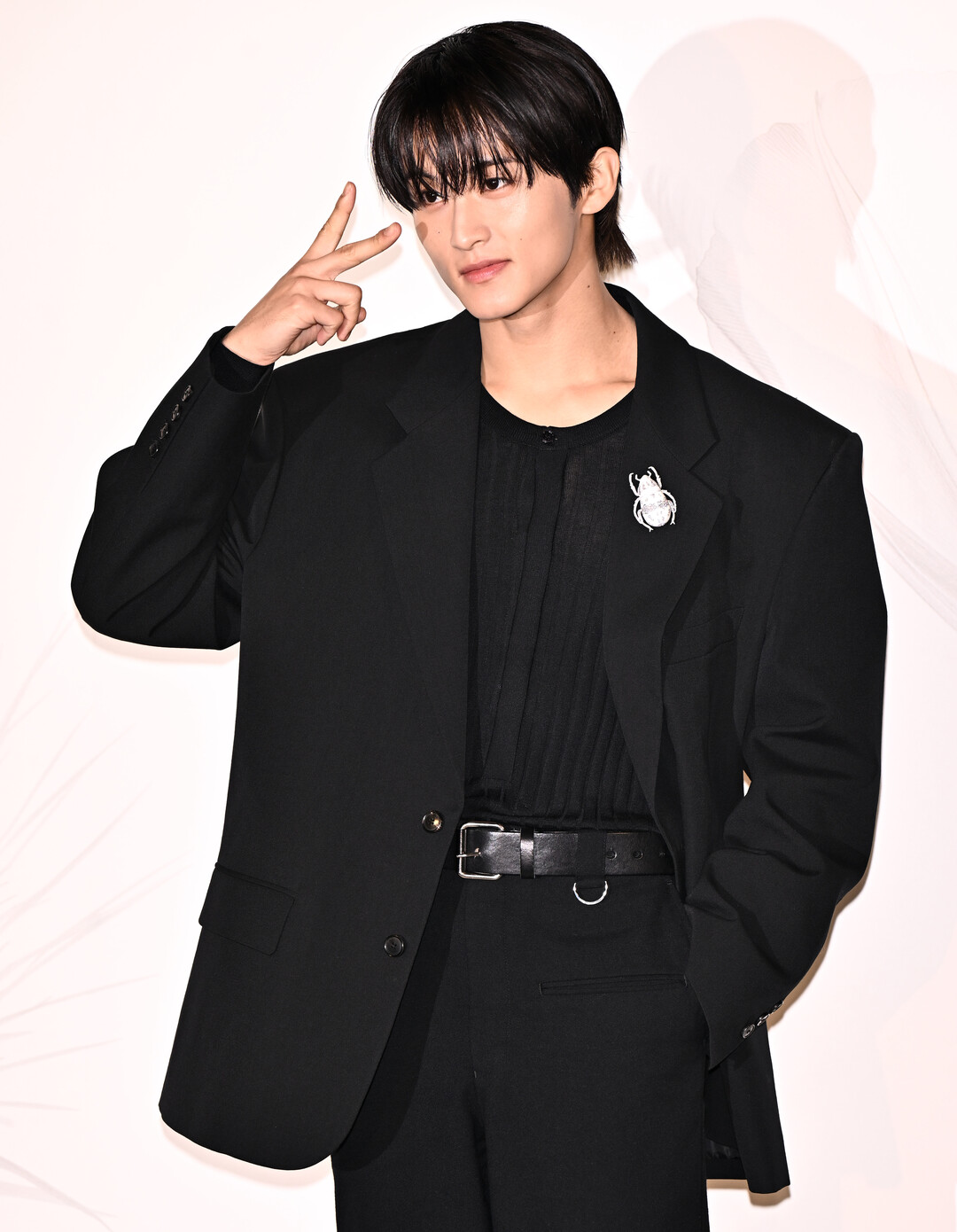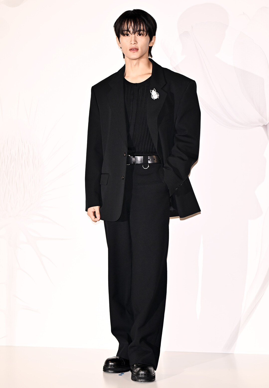 특히 눈에 띄는 것은 가슴에 장식한 실버 컬러의 비틀(딱정벌레) 브로치. 올블랙 룩에서 독특한 포인트로 작용하며 개성 있는 감각을 드러냈다. 이 같은 인섹트 모티브 주얼리는 최근 패션계에서 주목받는 트렌드다.