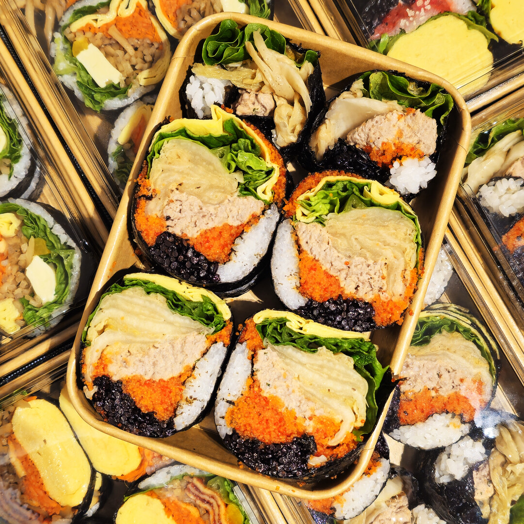 공개된 사진 속 김밥은 일반 김밥과는 확연히 다른 비주얼을 자랑했다. 검은빛의 흑미밥을 베이스로 새우알(날치알)을 풍성하게 올린 위에 참치무침, 계란말이, 생상추, 백김치를 듬뿍 넣어 단면이 화려하고 풍성했다. 투명 포장 트레이에 10피스씩 정갈하게 담긴 모습은 일반 편의점 김밥과는 차원이 다른 완성도를 보여줬다.
