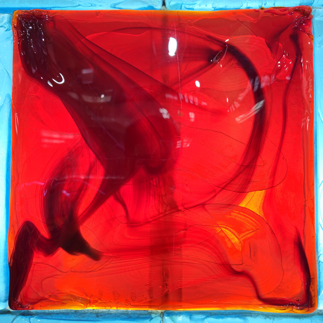 이 작품의 빨강은 로스코의 후기작을 연상시키는 강렬함을 지닌다. 그러나 불투명한 캔버스 위의 빨강이 아닌, 투명한 레진이나 유리를 통한 빨강은 새로운 차원을 제시한다. 빛이 통과하며 만들어내는 명도의 변화, 그림자의 층위, 반사되는 하이라이트는 로스코가 꿈꿨던 '색채를 통한 초월적 경험'을 물질적으로 구현한다.