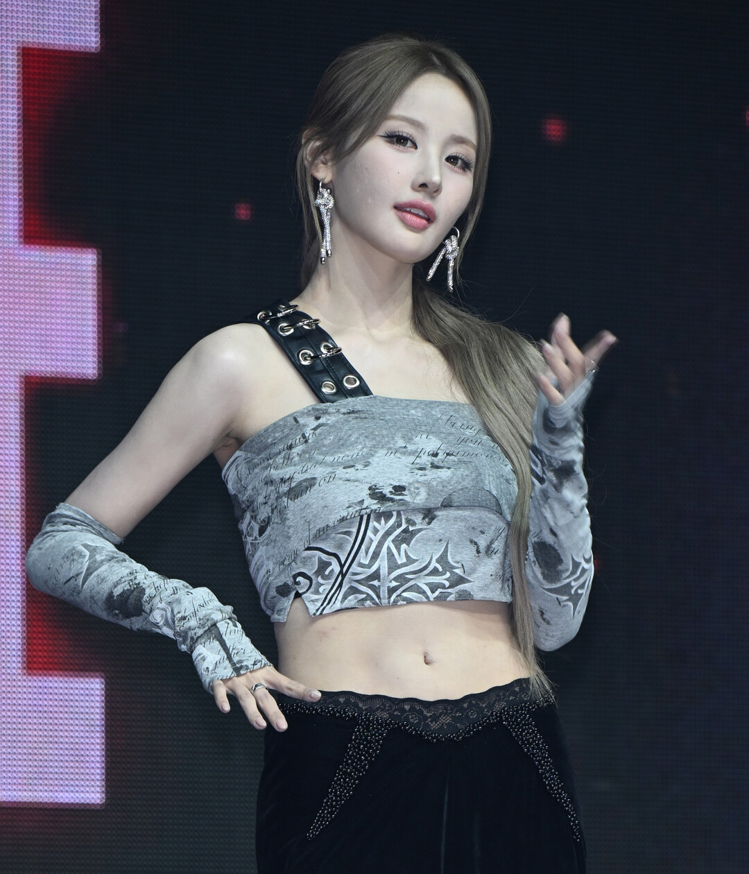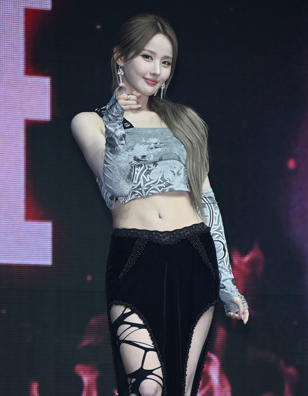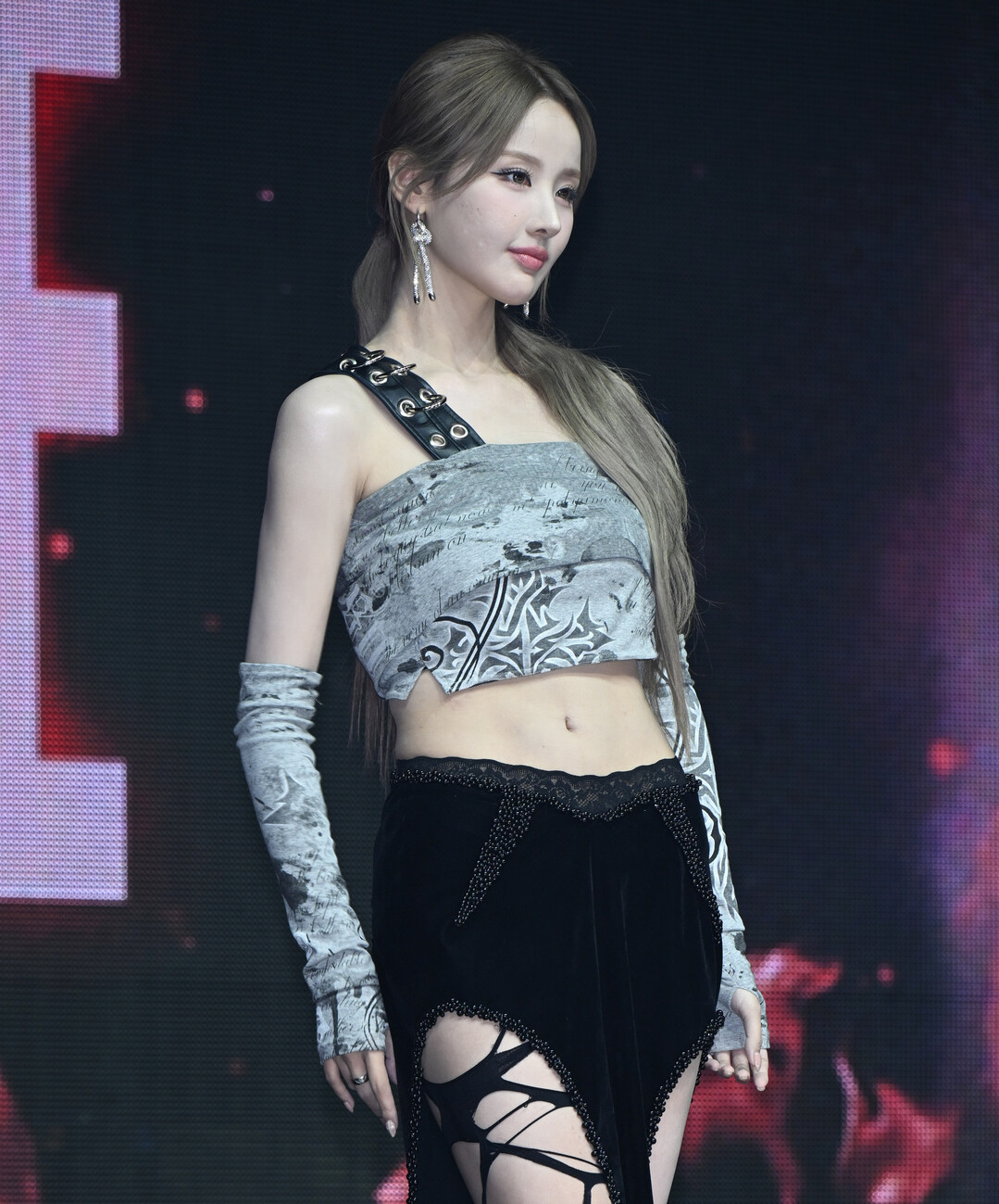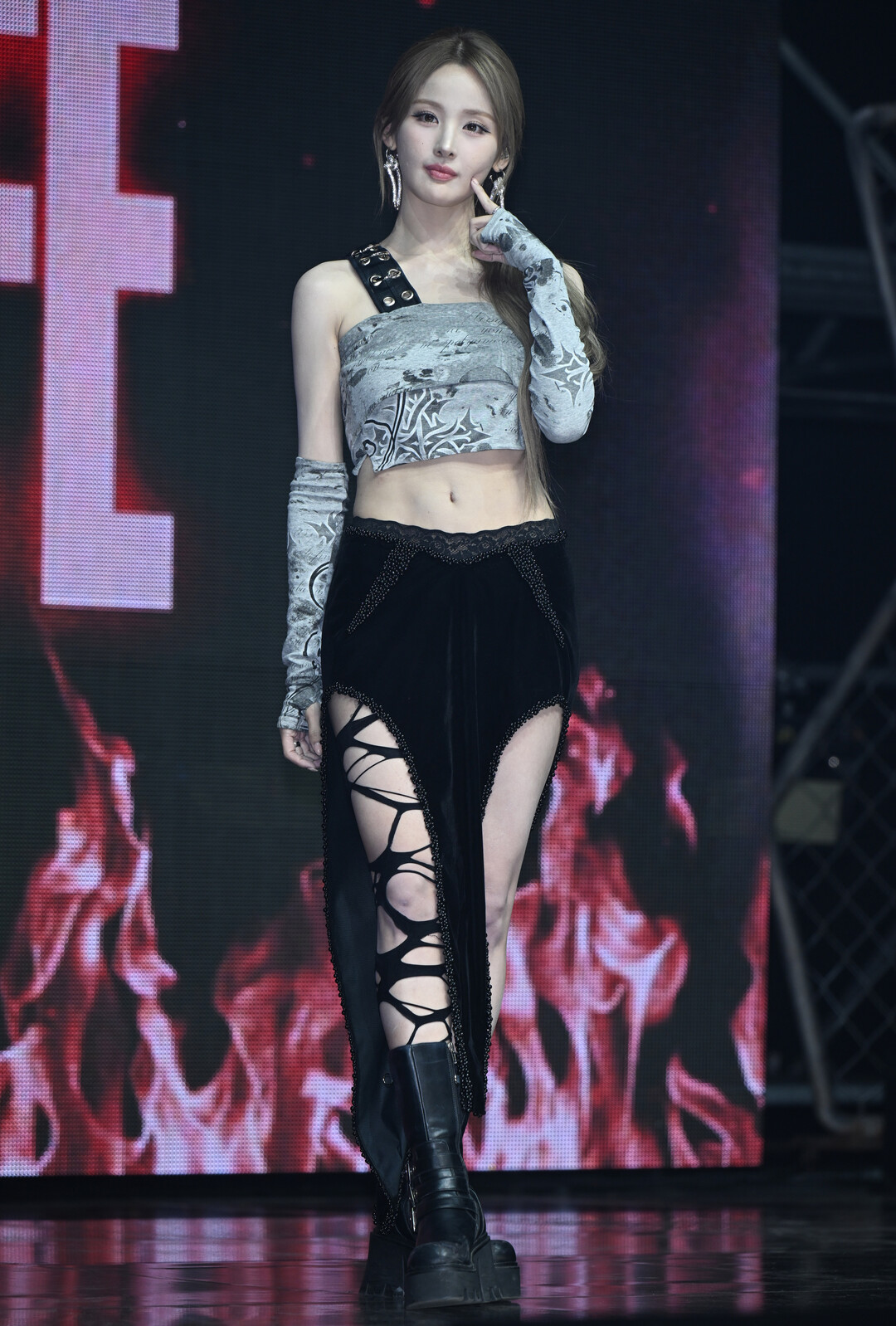 무대 배경을 가득 채운 붉은 불꽃 LED 비주얼과 어우러진 벨의 이날 스타일링은 앨범 타이틀 'Who is she'가 던지는 질문에 패션으로 답하는 듯했다. 그레이와 블랙의 절제된 색감 속에서도 컷아웃, 하네스, 벨벳 등 다양한 질감과 디테일이 충돌하며 강렬하고 입체적인 무대 이미지를 완성했다. 쇼케이스 현장을 찾은 팬들과 취재진의 카메라 세례를 한 몸에 받은 벨은 여유로운 미소와 자신감 있는 포즈로 이날의 주인공임을 증명했다.