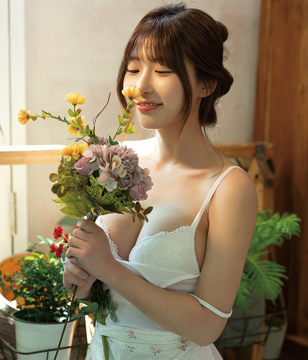 이번 화보에서 조이온은 '꽃보다 예쁜' 꽃집 알바생으로 변신해 화이트 민소매 티셔츠, 핑크 카디건, 꽃무늬 앞치마, 내추럴한 란제리 룩 등 다양한 스타일을 소화하며 봄 감성을 물씬 풍겼다.