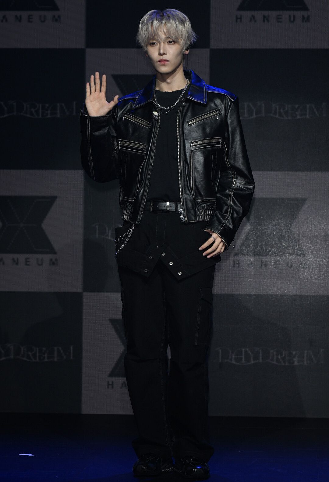 이날 장한음은 칼라와 어깨 패널이 포인트로 적용된 블랙 레더 재킷을 선택해 시선을 집중시켰다. 다수의 지퍼 디테일과 스티치 라인이 촘촘히 장식된 재킷은 모터사이클 재킷 실루엣을 기반으로 하면서도 전체적으로 오버사이즈 핏으로 재해석돼 스트리트 감성과 무대 퍼포머로서의 카리스마를 동시에 표현했다. 여기에 찢어진 네크라인의 블랙 이너와 스컬 핀, 레이어드 체인 목걸이를 더해 다크한 무드를 완성했다.