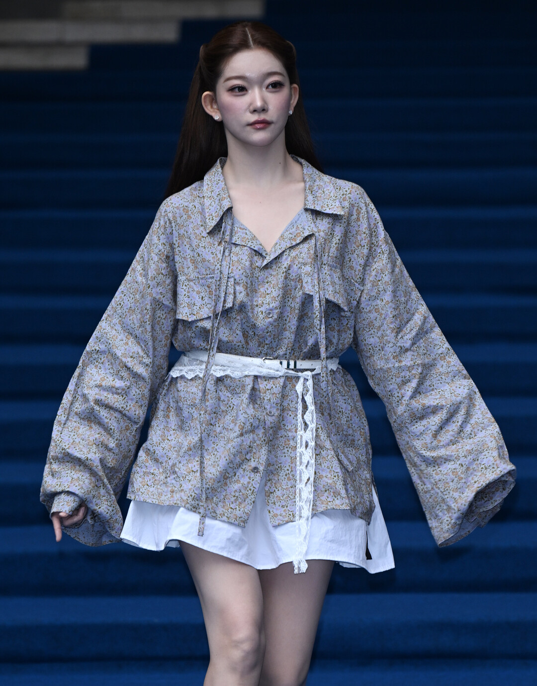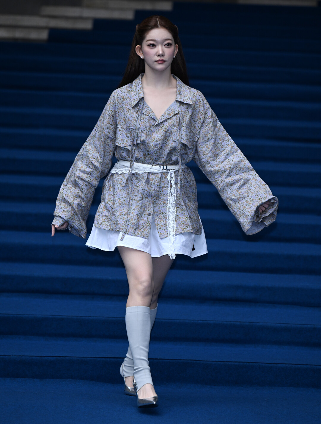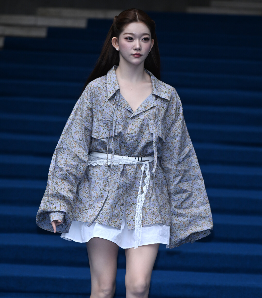 [K라이프저니|글·사진 이주상 기자] 4일 서울 중구 동대문디자인플라자(DDP)에서 열린 2026 F/W 서울패션위크 곽현주컬렉션에 참석한 걸그룹 빌리(Billlie) 멤버 츠키가 블루 톤 플로럴 재킷으로 청순하면서도 로맨틱한 매력을 발산했다. 오버사이즈 재킷과 화이트 미니스커트의 조합에 레이스 벨트를 더해 소녀 감성과 세련미를 동시에 완성했다.