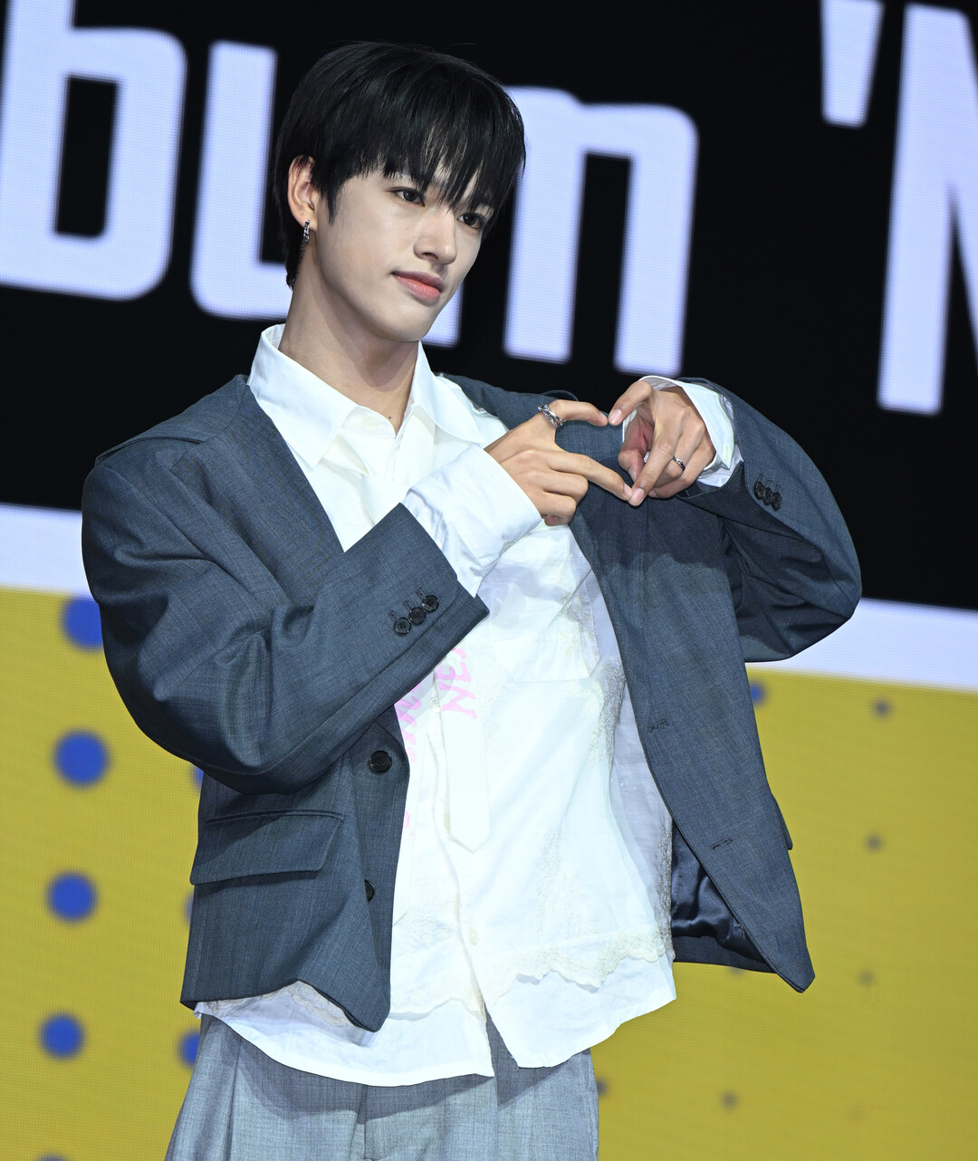 그레이 오버사이즈 수트에 앨범명 새긴 셔츠…'디테일이 살아있는' 세이타 룩