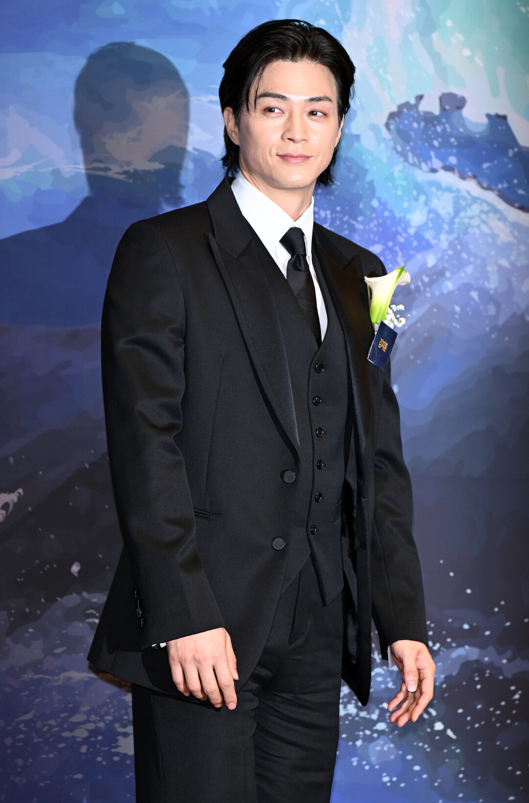 화이트 드레스 셔츠에 블랙 넥타이를 매치한 김지훈은 화이트 커프링크스로 소매 부분에 세련된 포인트를 주었다. 가슴에는 흰색 꽃 부토니에르를 장식해 시상식의 축하 분위기를 살렸으며, 올블랙 수트에 화이트 액센트가 더해져 시각적 균형감을 완성했다.