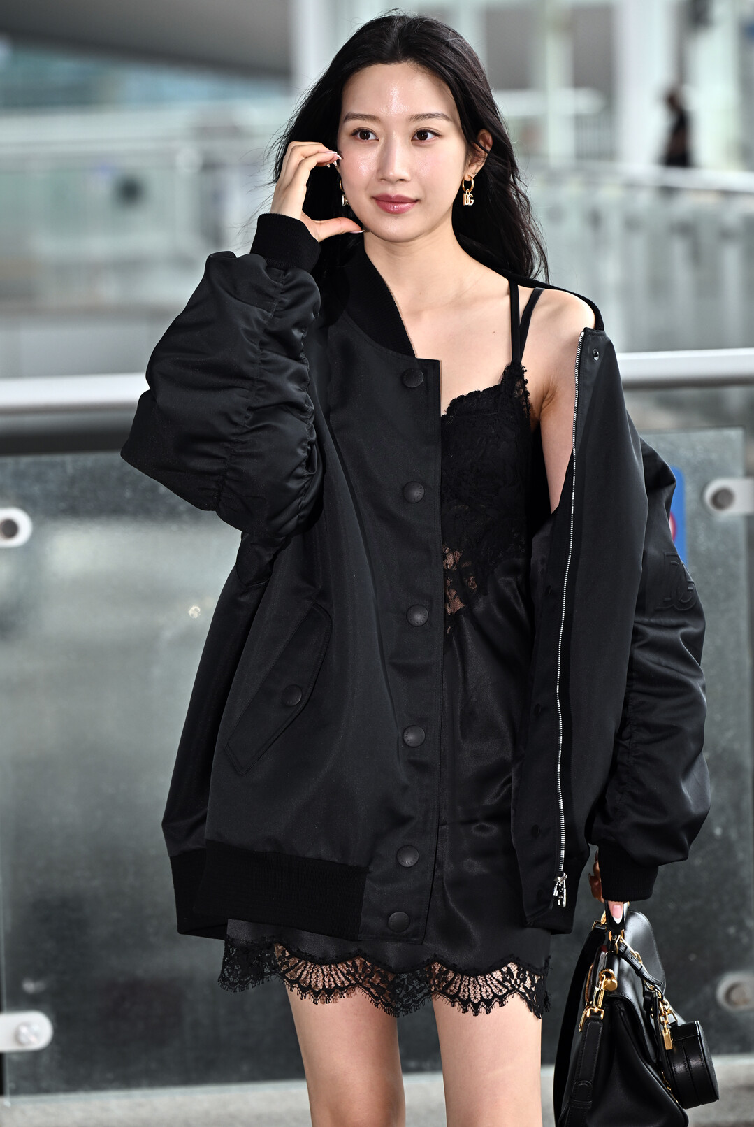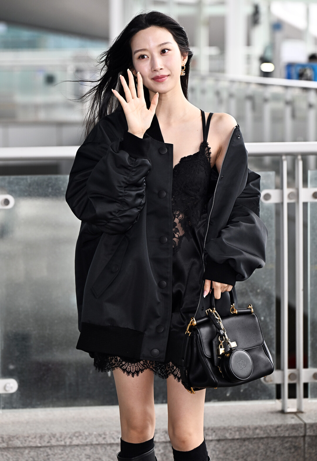 문가영은 이날 인도네시아 자카르타에서 열리는 '돌체 뷰티 자카르타' 행사 참석을 위해 출국하면서 자신이 글로벌 앰버서더로 활동하는 돌체앤가바나 브랜드의 200만원대 블랙 레이스 슬립을 착용해 등장했다. 오버핏 재킷을 걸치긴 했지만, 한쪽 어깨를 드러낸 채 안에 입은 시스루 소재의 슬립이 그대로 노출되도록 스타일링한 것이다.