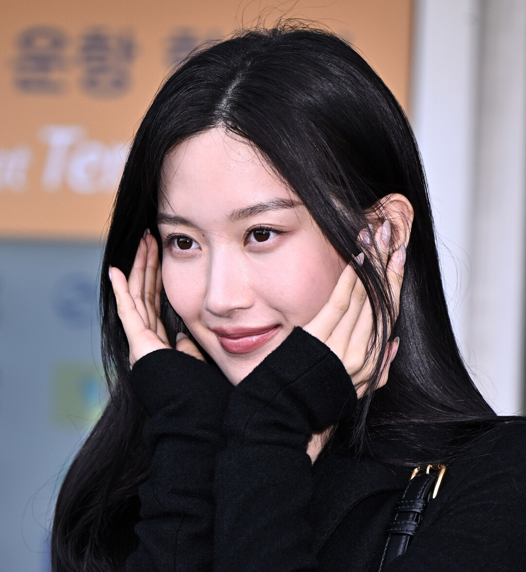 블랙 컬러의 니트 소재 상의가 주는 따뜻하고 편안한 느낌과 함께, 문가영 특유의 자연스러운 매력이 조화롭게 어우러져 접근하기 쉬운 이미지를 연출했다. 과하지 않은 메이크업과 자연스럽게 흘러내린 긴 생머리 헤어스타일 역시 전체적인 룩의 완성도를 높이는 데 기여했다.