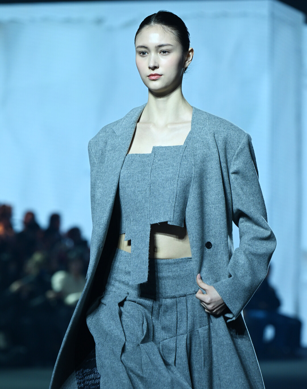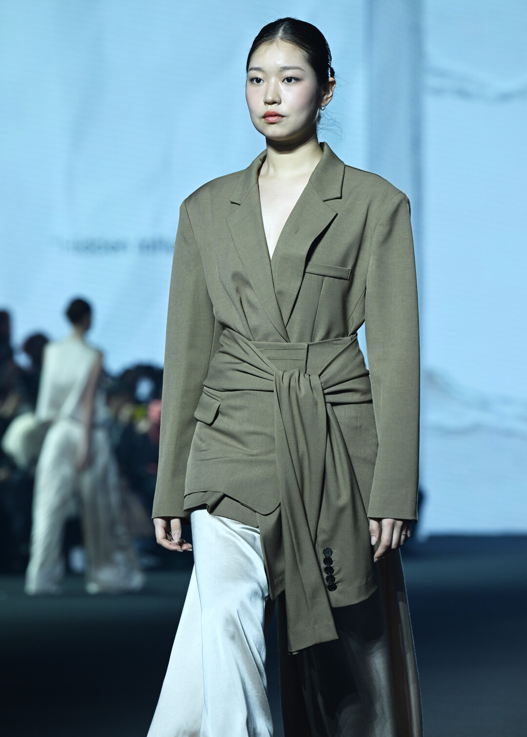 오버사이즈 실루엣과 드레이프 디테일은 착용자의 움직임에 따라 형태가 변화하며, 입는 사람마다 다른 이야기를 만들어낸다. 재킷 안에 숨겨진 레이어, 비대칭 헴라인, 의도적으로 노출된 안감 등은 완성된 형태보다 변화하는 과정에 주목하는 디자이너의 시선을 담았다.