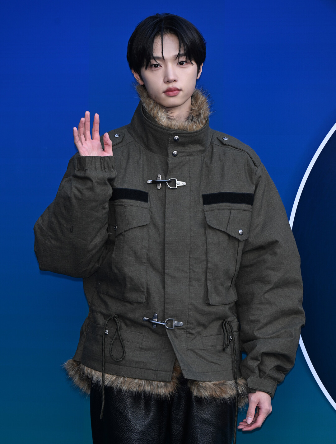 7일 서울 중구 동대문디자인플라자에서 열린 디자이너 강대헌의 에드리엘로스 컬렉션 쇼에 참석한 손동표는 밀리터리 무드의 카키색 퍼 재킷을 착용해 세련된 겨울 스타일링을 완성했다.