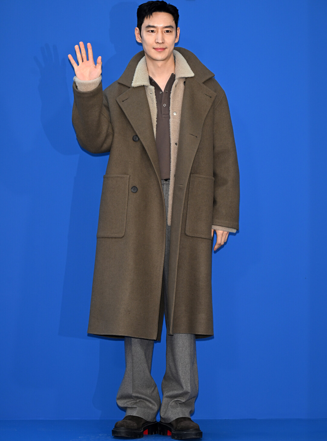 이제훈은 올리브 그린 톤의 롱 무스탕 코트를 메인 아이템으로 선택해 차분하면서도 세련된 분위기를 연출했다.